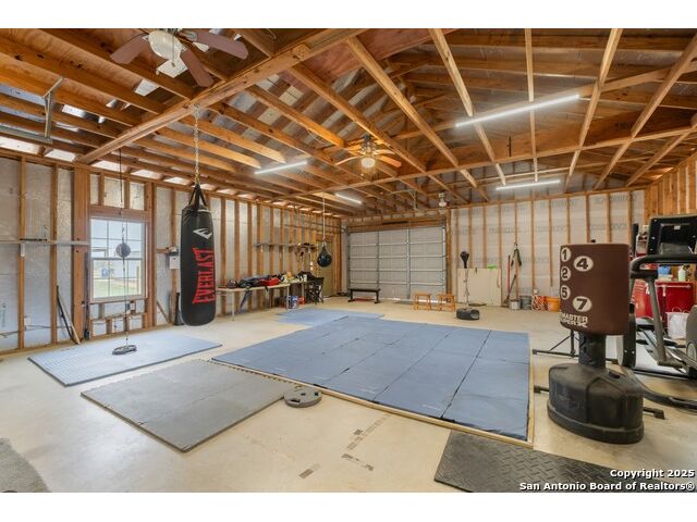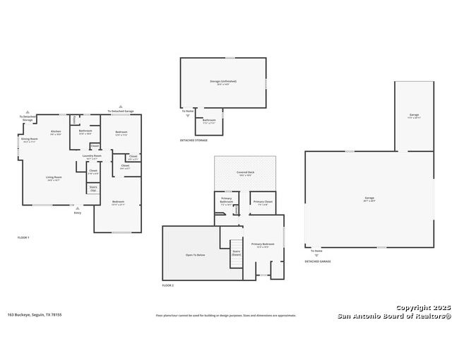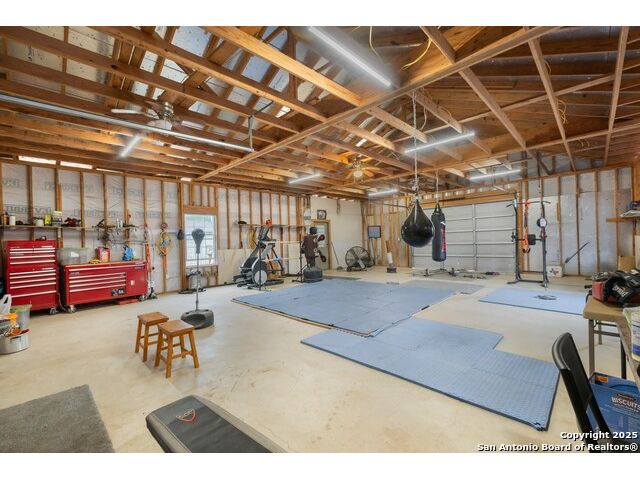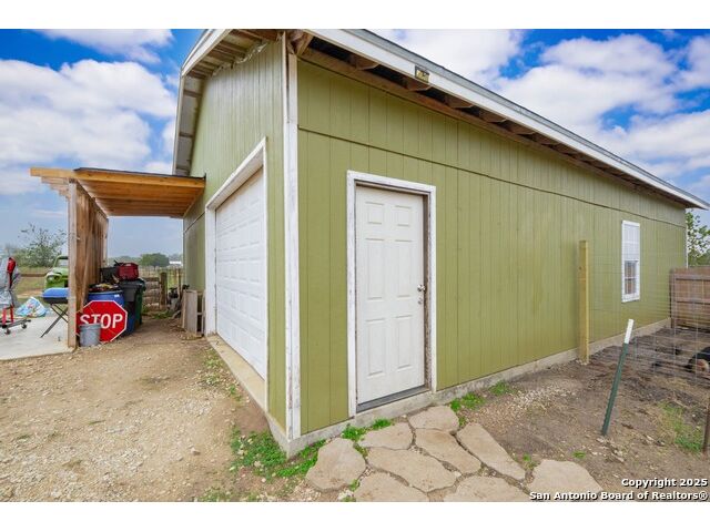 Situated on a generous 1.02-acre lot, this property offers space, privacy, and endless possibilities. With its split-bedroom layout, multiple living zones, outdoor access on both levels, and highly adaptable outbuildings, the home is perfectly suited for multi-generational living, hobbyists, or anyone looking to spread out and enjoy a versatile lifestyle. A 2-car attached carport adds everyday convenience. The septic system is in good condition, suitable for use with or without dog kennels or dogs - the current owner has German Shepherds and a Husky, but the setup can accommodate buyer preferences. This thoughtfully designed home features a spacious and functional layout enhanced by soaring ceilings and abundant natural light. The main level includes an open-concept living and dining area with a soaring ceiling that creates an inviting central gathering space connected seamlessly to the kitchen. Two secondary bedrooms are located downstairs, each with its own closet and easy access to a full bathroom. The main level also includes a dedicated laundry area with additional storage, along with access points leading to the detached storage building. This layout provides easy movement between indoor and outdoor spaces. Upstairs, the private primary suite serves as a peaceful retreat. It features a tray ceiling, direct access to a covered balcony, a spacious walk-in closet, and an ensuite bath appointed with a dual vanity and walk-in shower, an ideal space to unwind. Improvements have been made recently, including a new balcony cover installed approximately six months ago. The detached structures offer exceptional versatility. The separate detached storage building includes its own full bathroom and conceals a surprising feature beneath the floorboards: an inground pool with potential for future customization. The large detached garage is currently used as a fitness gym and workshop, providing abundant space for equipment, tools, or creative projects. The home's roof was built in 2016, and while the structure was enclosed then, the property was fully completed in 2018. Overall, this property delivers a rare combination of space, comfort, and flexibility, perfect for those seeking room to grow, work, relax, and enjoy a truly adaptable lifestyle.