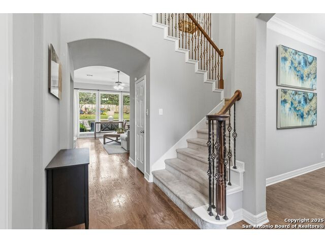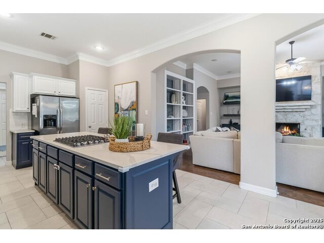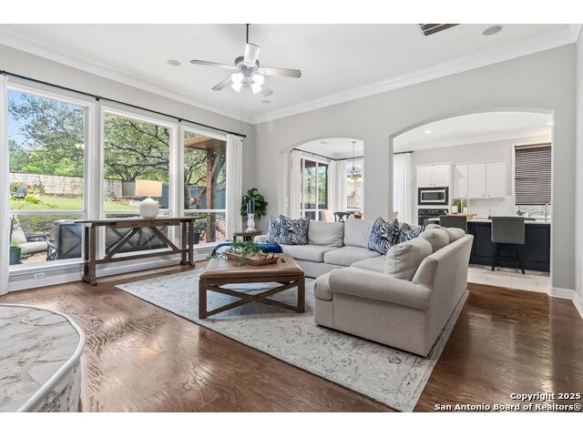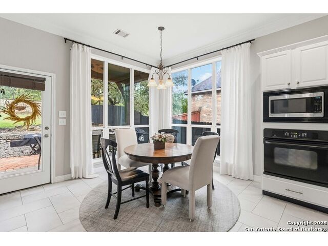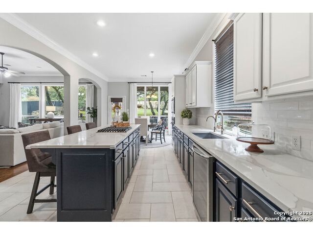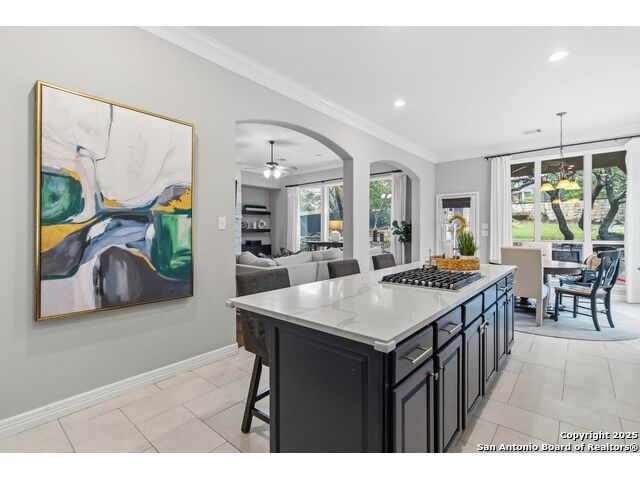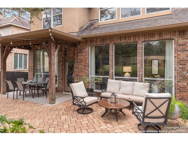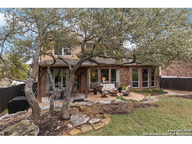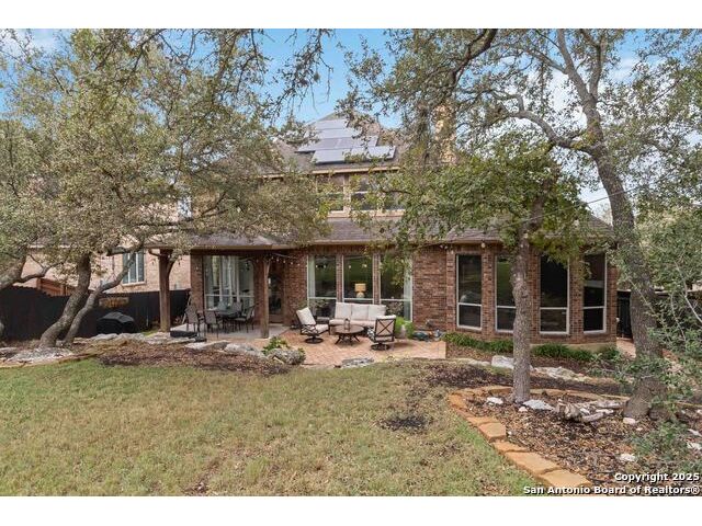 Beautifully maintained home in one of San Antonio's most desirable communities. This home offers a functional layout with tall ceilings, 8' windows and plenty of natural light. The main living area features a stone fireplace, built in shelving, and wide angled views of the Texas sized back yard. A chef's dream of a kitchen is equipped with a gas cooktop, wall oven and a large center island with plenty of storage and ideal for cooking entertaining. The home also includes a formal dining room and a spacious loft upstairs. Bedrooms are well sized and the layout supports some privacy as well as plenty of open space to gather. Mature trees, landscaped yard and outdoor seating areas will keep your company comfortable. Solar panels will help in the Texas summer!
