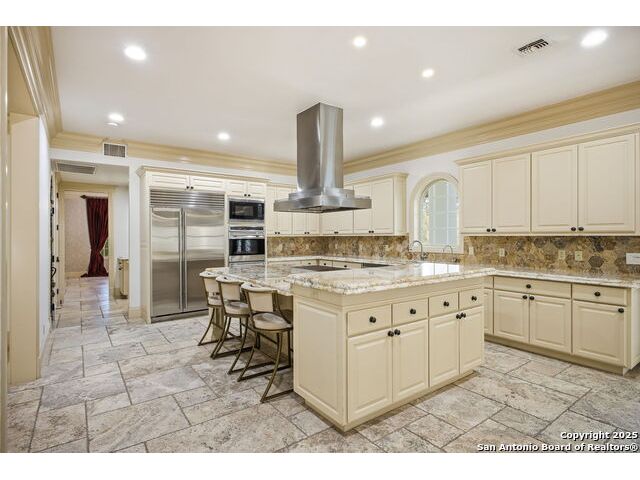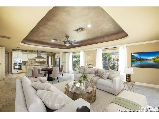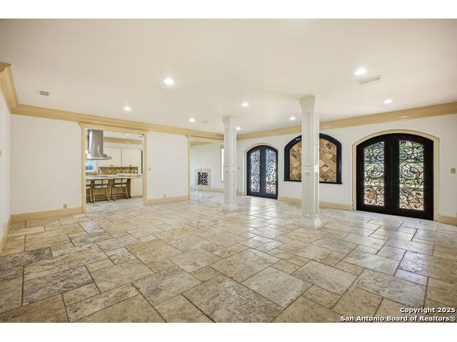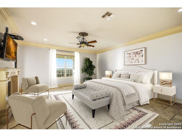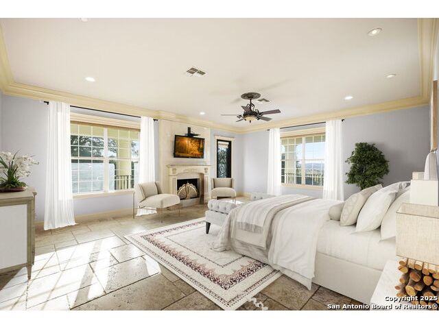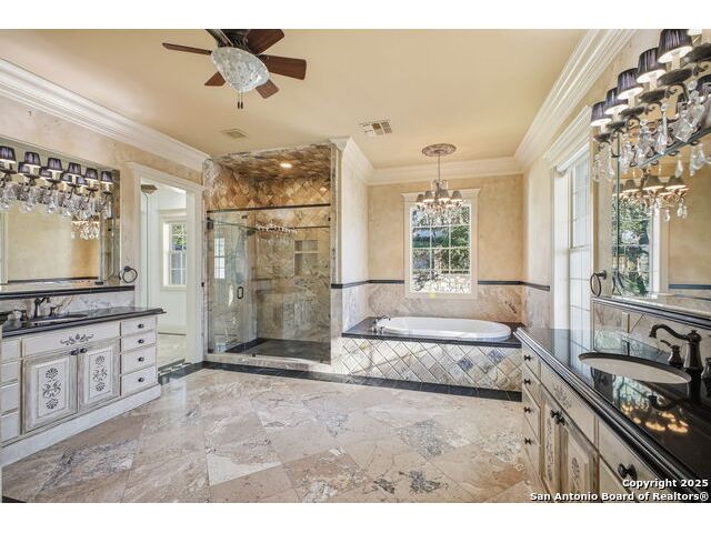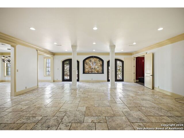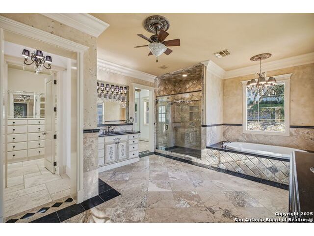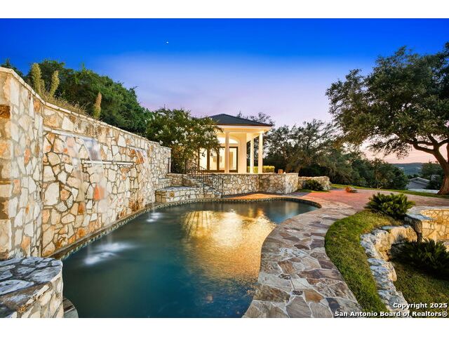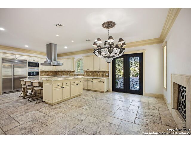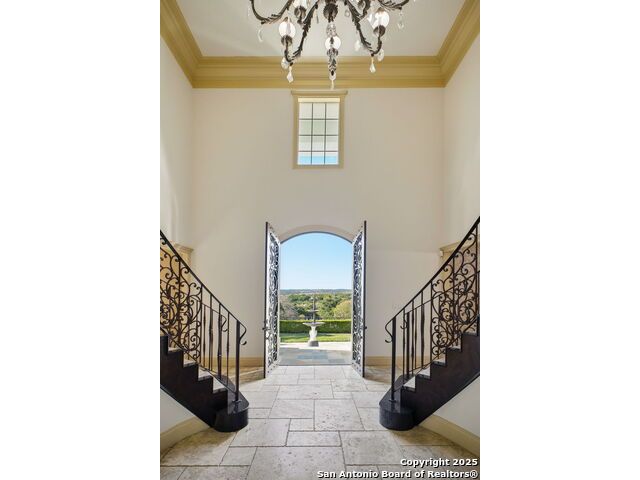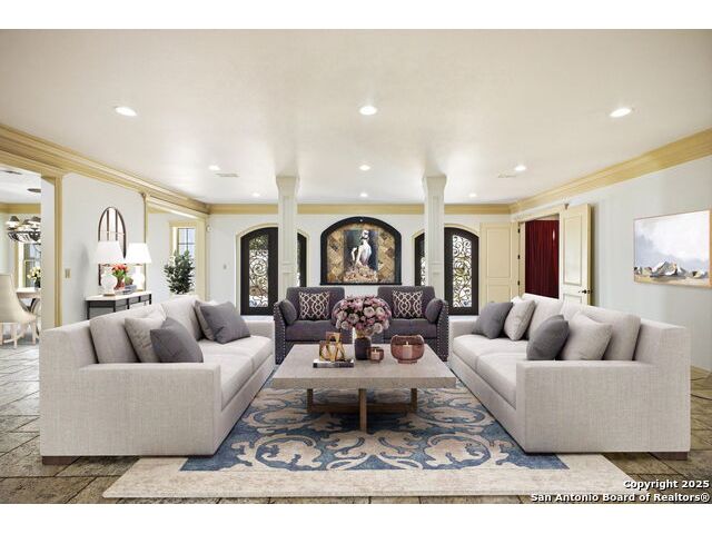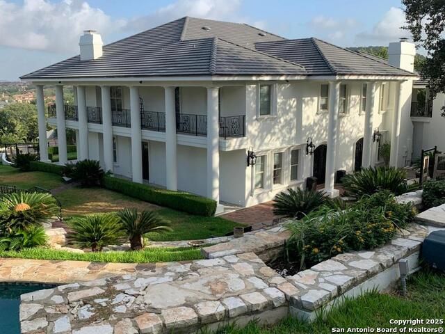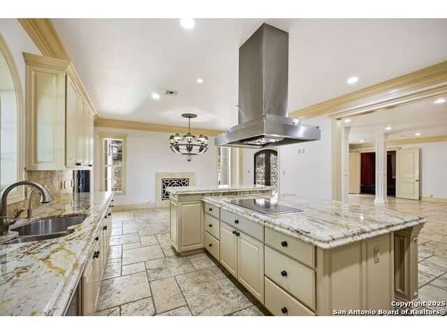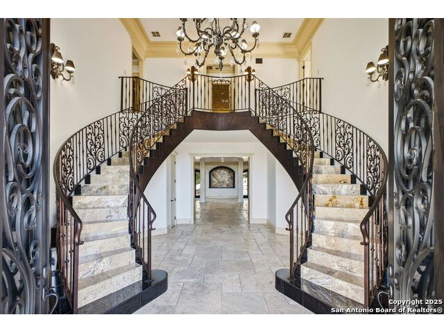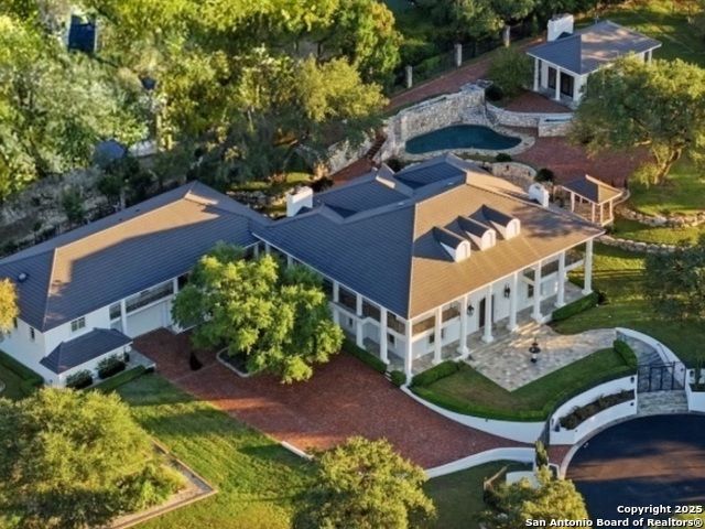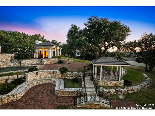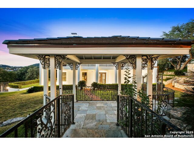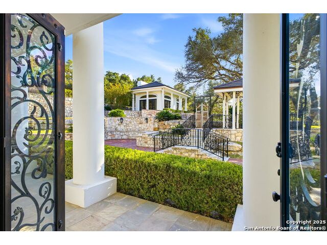 Magnificent Dominion Estate with breathtaking views and a rainbow of sunsets from the breeze catching verandas on 2.24 acres! Finely assembled with every luxury amenity of the highest quality. The grand estate spares no detail, 7 Bedrooms and 8.5 Baths featuring 11 sets of Durango doors, stunning double staircase, epicurean kitchen,and sprawling living spaces. Showroom appeal presents gorgeous character for a unique living experience like no other. Convenience, comfort, and elegance are found in this stunning home featuring marble flooring, media room, wine room with iron doors, formal living, second living area and dining room, library, elevator for ultimate connivence, and a gourmet kitchen complete with fireplace. Spacious master suite with veranda, dual closets, exercise room/ makeup room, and fire place are certain to make the new owner exceptionally comfortable. Every bedroom has its own luxury bath and extra large spacious closets. The 2 bedroom-2 bath Carriage house/ apartment, 1 bedroom, living room 1 bath apartment or maids quarters offers great opportunity for second family scenarios. A car lover's dream garage that houses up to ten cars, pool and pool house, gazebo, spacious patios are also among the many inviting features of this magnificent estate. The 24 hour gate guard offers the utmost privacy and security.