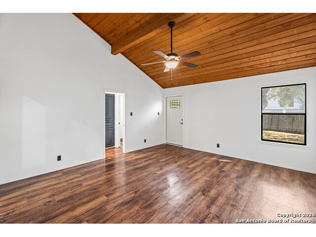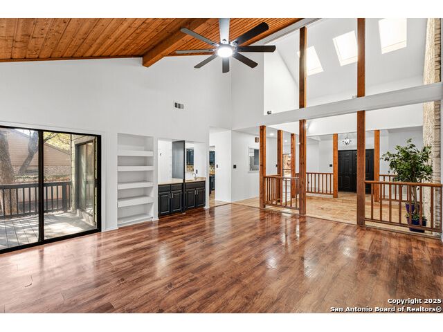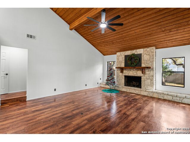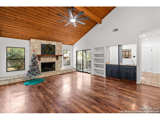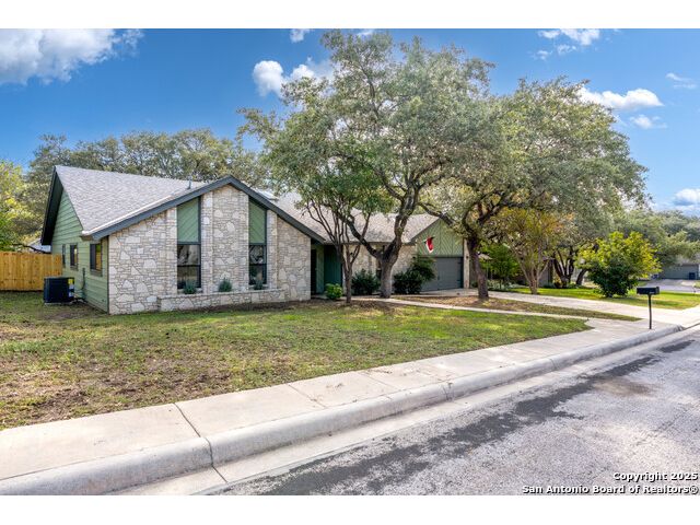 Discover the perfect blend of timeless character and modern updates in this beautifully renovated, spacious single-story home located in the highly sought-after Green Spring Valley community. Surrounded by mature trees and exceptional neighborhood amenities, this home offers comfort, convenience, and style. Designed for effortless entertaining, the home features a large living area with a wet bar, a separate dining room, a cozy breakfast nook, and a unique atrium-perfect for an indoor garden, seasonal decor, or a relaxing sitting space. Recent renovations include fresh paint, updated fixtures throughout, and a brand-new HVAC system. The kitchen offers modern countertops and sink, along with a new dishwasher, oven, and microwave. The refrigerator also conveys, making move-in a breeze. Step outside to a peaceful backyard retreat. Enjoy a covered patio ideal for morning coffee or evening drinks, along with an expansive, tree-shaded yard ready for gardening, a play area, or outdoor entertaining. Green Spring Valley offers an unmatched lifestyle with a community pool, tennis, basketball, and pickleball courts and a 32-acre nature park with walking, biking trails and picnic areas. With quick access to 1604, 410, and 281, you'll enjoy the perfect balance of serene suburban living and city convenience.