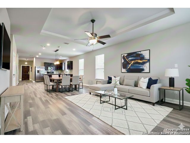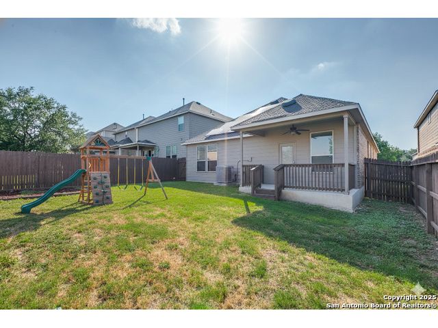 Welcome to this beautifully updated 3-bedroom, 2-bath home with a versatile flex room-perfect for a home office, gym, or playroom. Nestled in the sought-after Arcadia Ridge community. Enjoy peace of mind and lower utility bills with solar panels to be paid off at closing. Step inside to discover new flooring, a spacious living area that flows seamlessly into the kitchen and dining spaces ideal for gatherings and entertaining. Comfort is key with a new oversized A/C unit installed in 2024, while the epoxied garage floors offer a clean, polished look for your storage and workspace. The water softener system adds even more convenience and comfort to daily living. Don't miss your chance to own this move-in-ready, energy-smart home in one of San Antonio's premier neighborhoods.