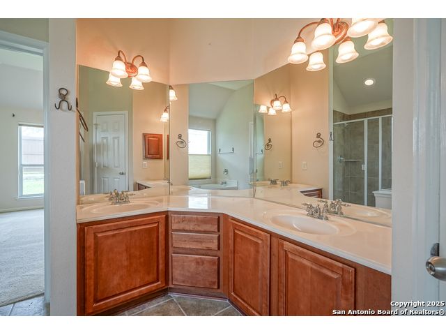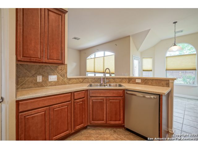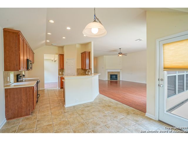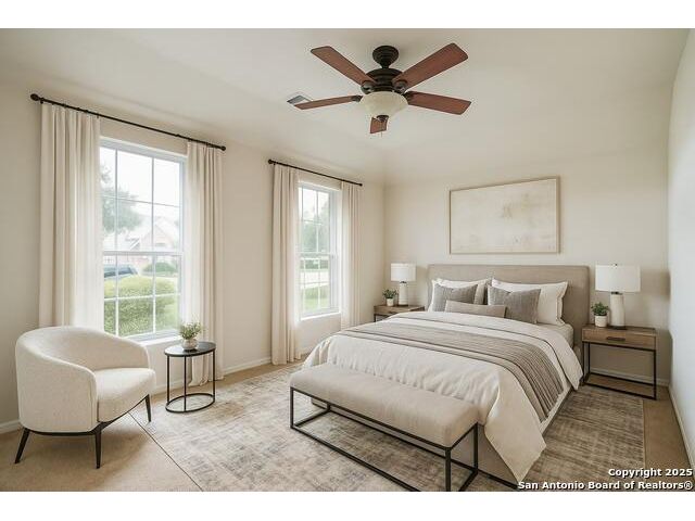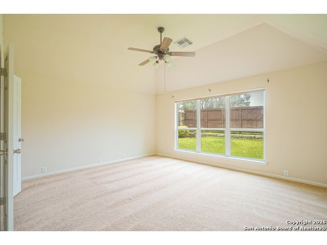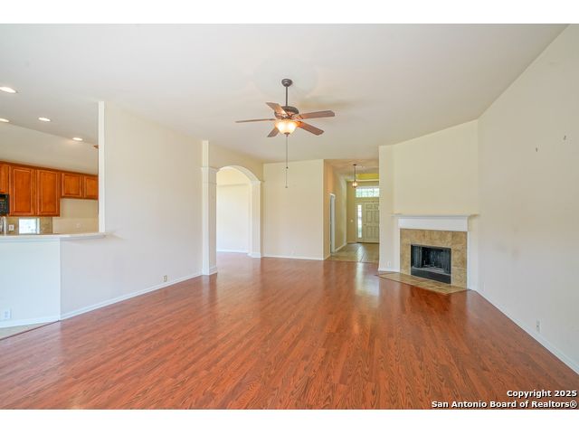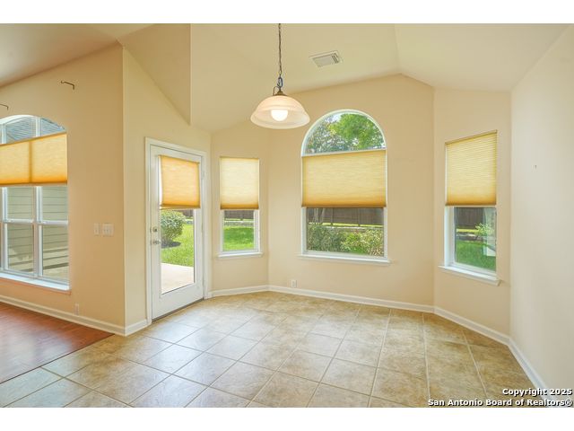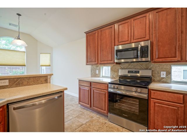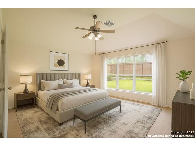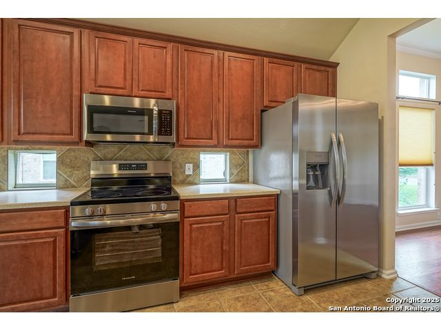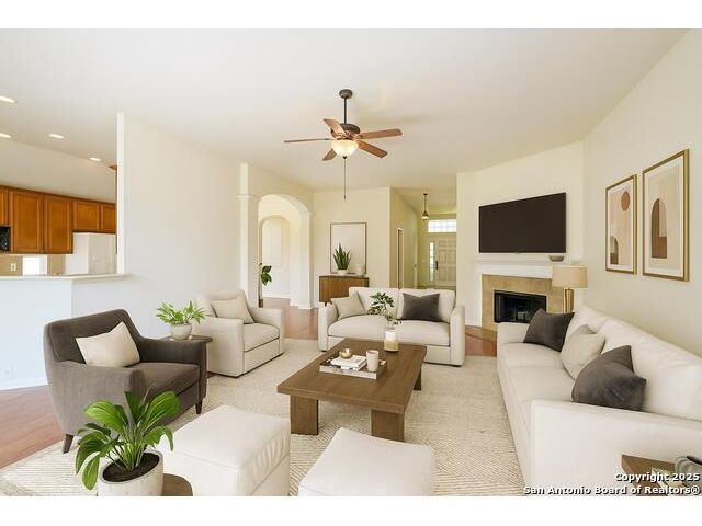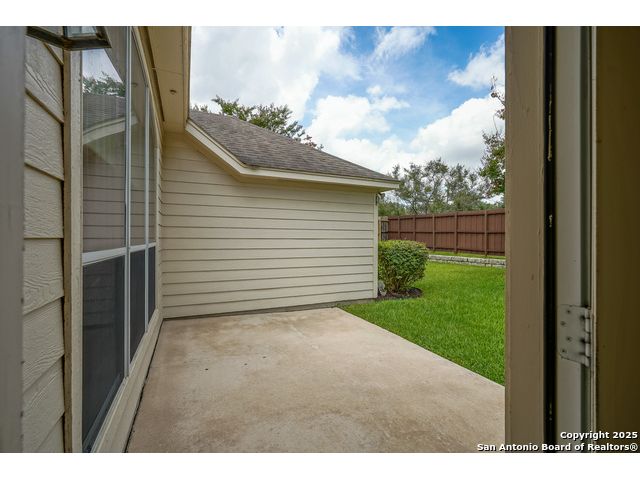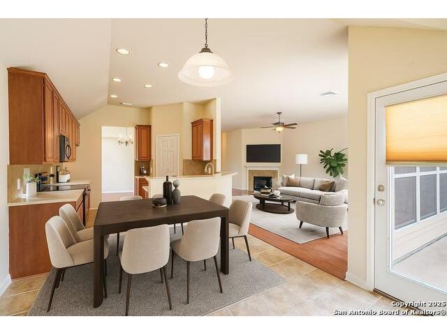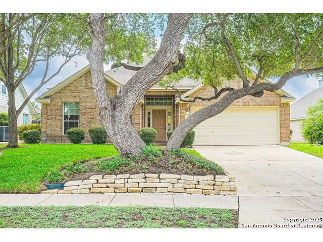 Charming single-story home located in the classic and cozy Braewood subdivision of Cibolo. Built by Pulte, this flexible floor plan offers three bedrooms plus a study-or a fourth bedroom-featuring elegant French doors. Enjoy a spacious open living area with high ceilings and abundant natural light. Recent upgrades include a new heavy composition roof (Nov 2025) and new stainless steel appliances (Nov 2025). Additional updates feature an improved HVAC system and laminate flooring in the living and dining areas, with ceramic tile in the kitchen and breakfast room. The split primary suite offers a relaxing retreat with a garden tub, separate shower, and generous walk-in closet. Beautiful oak trees canopy the front yard, and the landscaping throughout the property is thoughtfully maintained. Schedule your private viewing today!