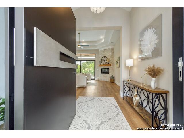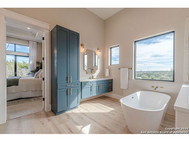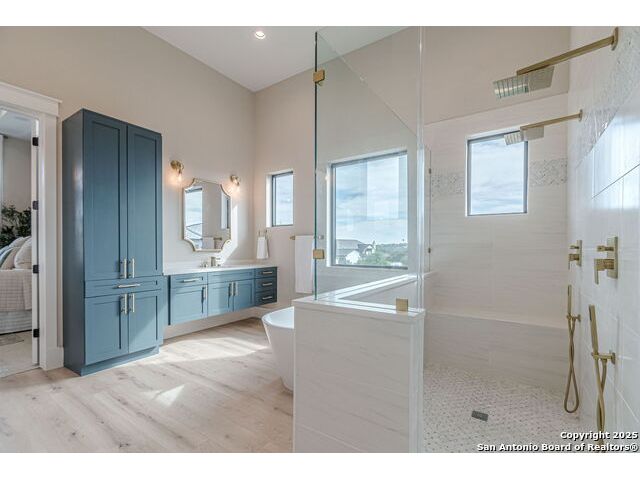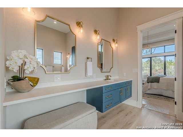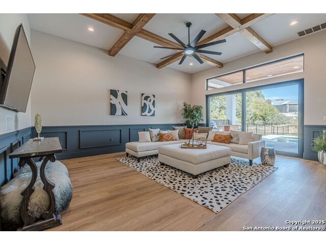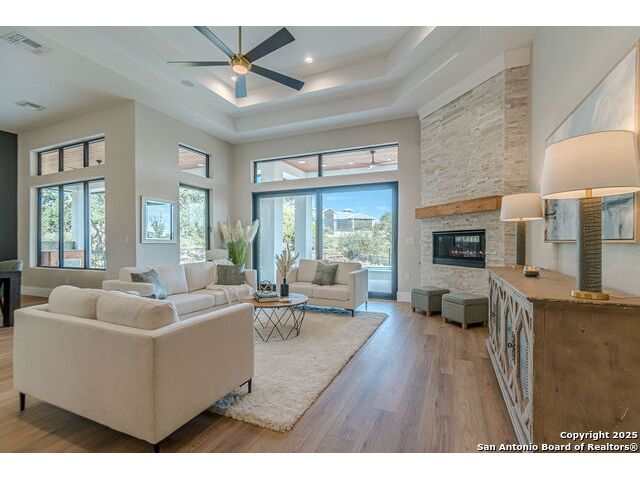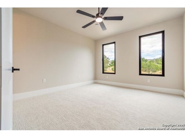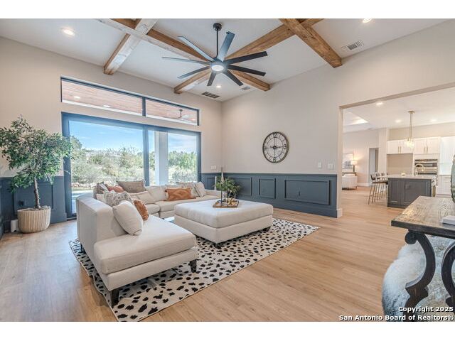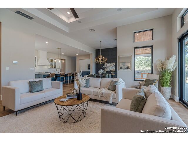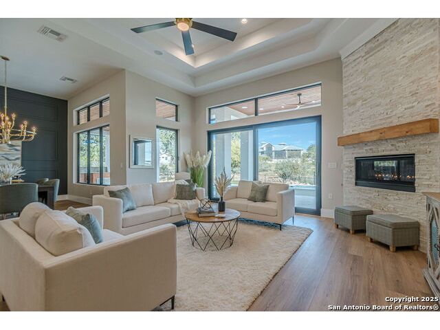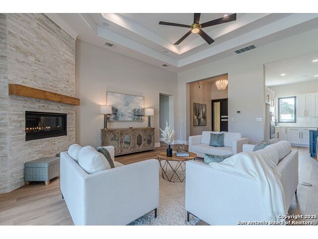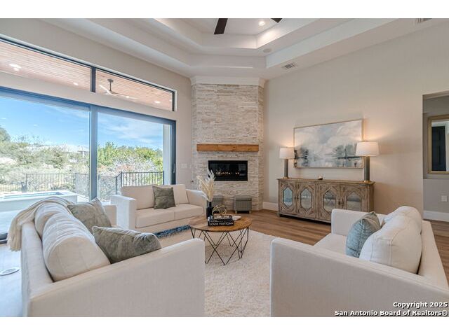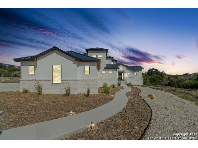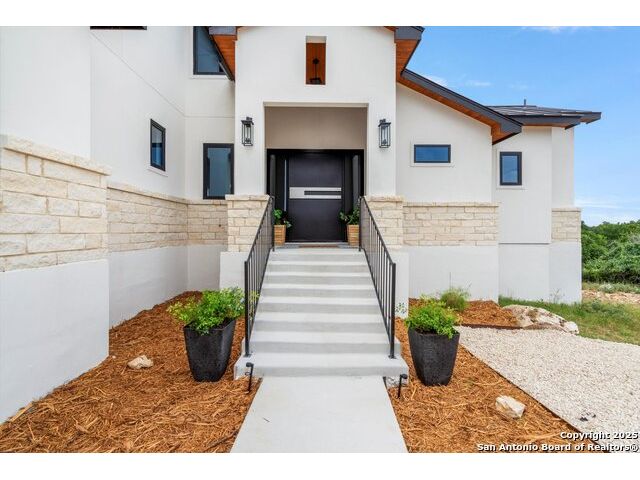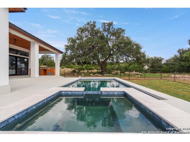 ***OPEN HOUSE SUNDAY DECEMBER 7 1-4pm*** Step into this never lived in, brand-new, 3,702 sq ft custom-built masterpiece nestled on 1.32 private acres in the heart of Texas Hill Country. Designed for those who appreciate both sophistication and comfort, this 4-bedroom, 4.5-bathroom residence offers refined interiors and expansive Hill Country views from nearly every room thanks to the tempered glass casement windows. Each bedroom features its own en suite bath, creating private retreats for family and guests alike. The heart of the home is an open-concept living space with soaring ceilings, upscale finishes, and seamless indoor-outdoor flow. The gourmet kitchen is outfitted with premium appliances and transitions effortlessly into the expansive outdoor kitchen and covered patio - perfect for entertaining or relaxing under the Texas sky. Step outside to your resort-style backyard featuring a sparkling pool and hot tub, controllable via your phone, and plenty of space to soak in the panoramic surroundings. A spacious 3-car garage provides room for toys and tools, while the gated neighborhood and quiet cul-de-sac location adds extra privacy. A three zone electric heat pump and spray foam insulation will keep you and your bills cool! Whether you're entertaining guests or enjoying a peaceful evening at home, this brand-new home blends luxury, style, and tranquility in one of the most desirable communities in New Braunfels with world class amenities! Schedule your private tour and experience the beauty for yourself - this is Hill Country living at its finest.