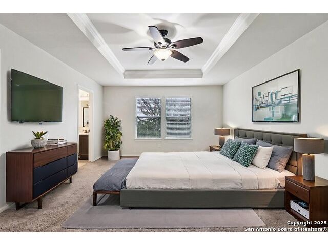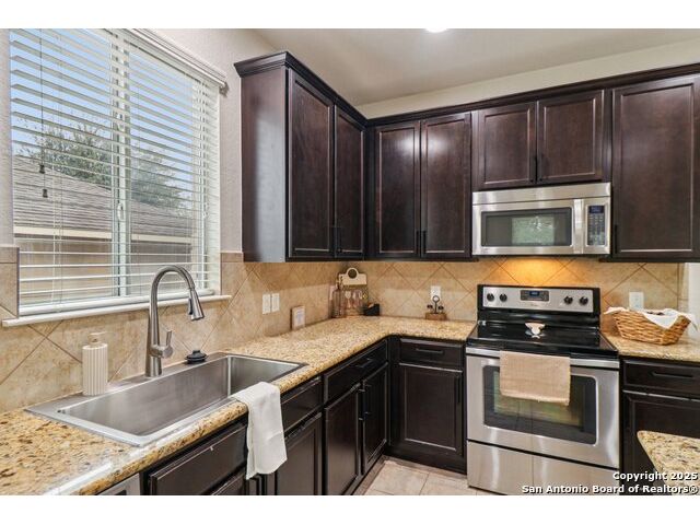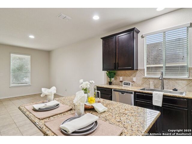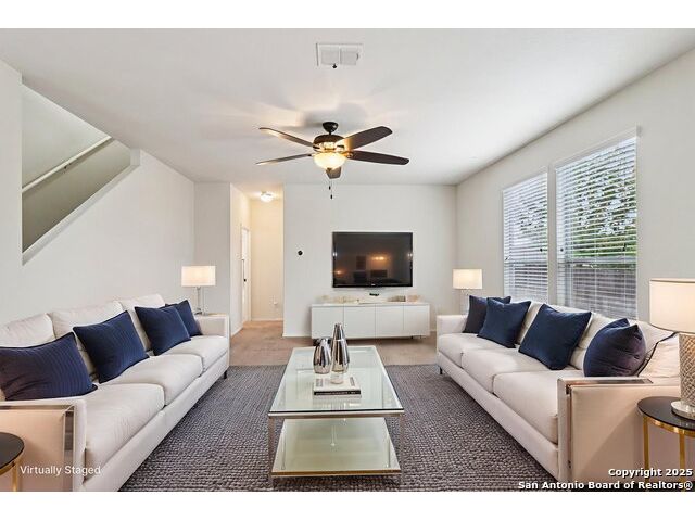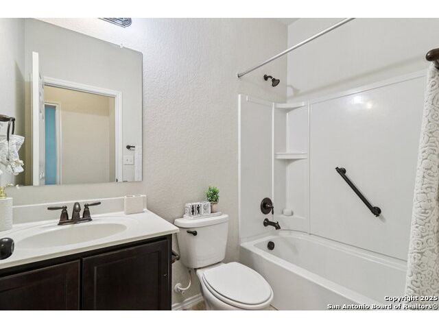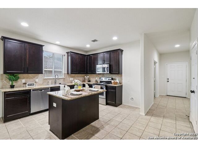 Welcome home to this beautifully maintained 5-bedroom, 3-bath property with an office perfectly situated just minutes from Randolph Air Force Base, Rolling Oaks Mall, The Forum, IKEA, and quick access to 1604/ I-35. This MOVE-IN ready home offers exceptional space, starting with a secondary bedroom and full bath downstairs-ideal for guests or a mother-in-law suite. A dedicated office on the main floor allows for easy work-from-home living. The heart of the home features a spacious kitchen with a large granite island, plenty of counter space, and a nice-sized dining area perfect for gatherings. Upstairs, you'll find a roomy loft, the primary suite with double vanity and walk-in shower, plus three additional secondary bedrooms-all generously sized and offering great flexibility for family, guests, or hobbies. Step outside to a large backyard complete with an extended covered patio, ideal for grilling, entertaining, or relaxing evenings. A welcoming front porch adds curb appeal, while a water softener and sprinkler system provide added comfort and convenience. With space, care, and a location that can't be beat, this home truly stands out from the rest. Schedule a tour TODAY!
