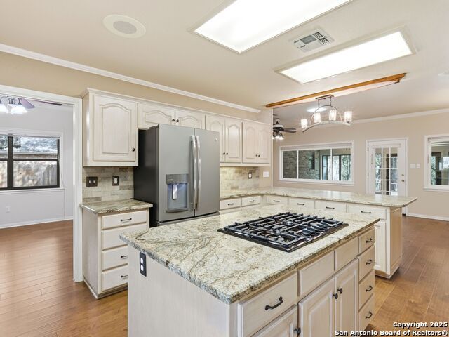 This is THE ONE! A timeless ranch-style retreat on .53 oak-studded acres just moments from historic Gruene. This elegant home offers oversized bedrooms, 3 full baths, a dedicated office, spacious open kitchen, and inviting heated and cooled sunroom - certain to become your favorite space. Framing picturesque views of the private backyard that gently meanders down to a trickling creek, this sunroom delivers year-round comfort, natural beautiful and unmatched serenity. Oversized two car garage, circular driveway for added parking, and gorgeous native landscaping all frame this refined residence, set peacefully on a quiet cul-de-sac. Offering unmatched proximity to Gruene's boutique shopping, dining, and iconic LIVE music, this property captures the essence of elevated Hill Country Living!