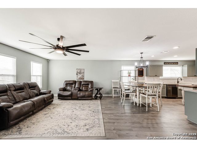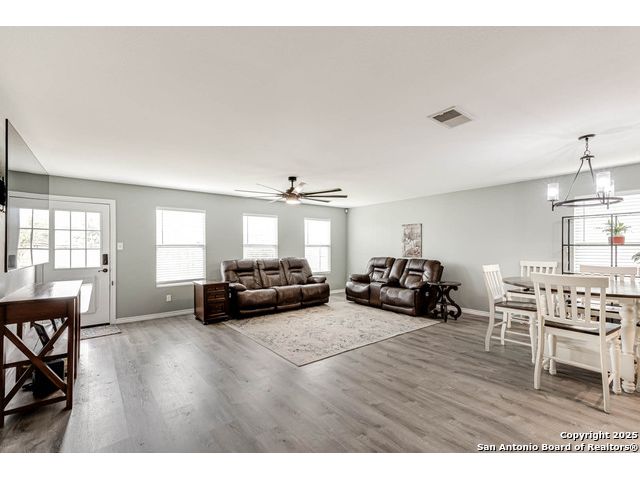 Welcome to your dream home in Cibolo, Texas - a sprawling 4-bed 2.5-bath 2900+ sq ft home that sits in the highly sought after Schertz-Cibolo-UC ISD (top rated schools) on a quiet street with a fully fenced back yard. Imagine starting your mornings on the welcoming front porch with coffee in hand and watching the Texas wildflowers sway in the gentle breeze. Step inside to LVP floors and tons of natural light. A private study with French doors is perfect for working from home. The bright and open-concept living area flows seamlessly into the updated gourmet kitchen, featuring stainless steel appliances and a farmhouse sink, ideal for cooking and entertaining. The downstairs primary retreat boasts elegant plantation shutters, dual sinks, and massive walk-in closet. Step out back to a large yard with your own storage shed. Location is everything: minutes to I-35, Randolph AFB, and shopping galore. Easy commute to San Antonio, New Braunfels, or Austin. Rarely does a home of this stature, with generous square footage, refined finishes, and an exceptional location become available at such an affordable price. This is quiet luxury that meets extraordinary value. Move-in ready and priced to sell. Schedule your private tour today!!