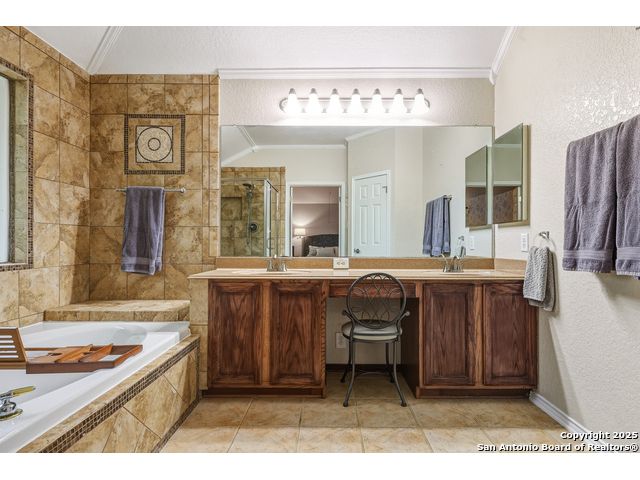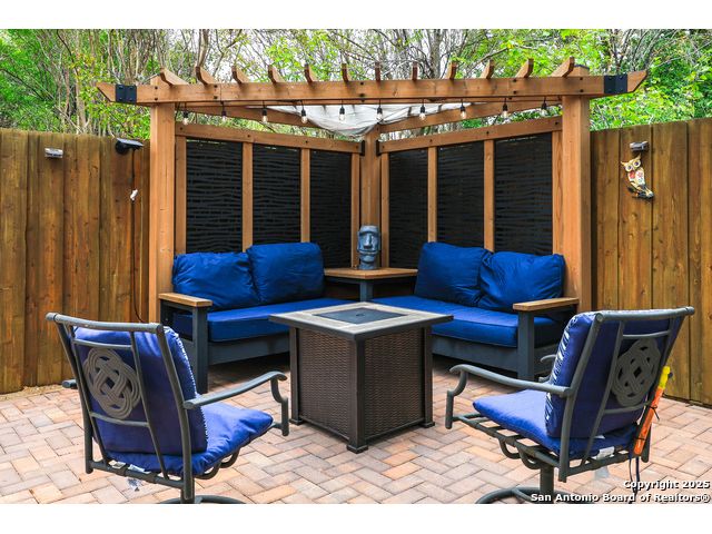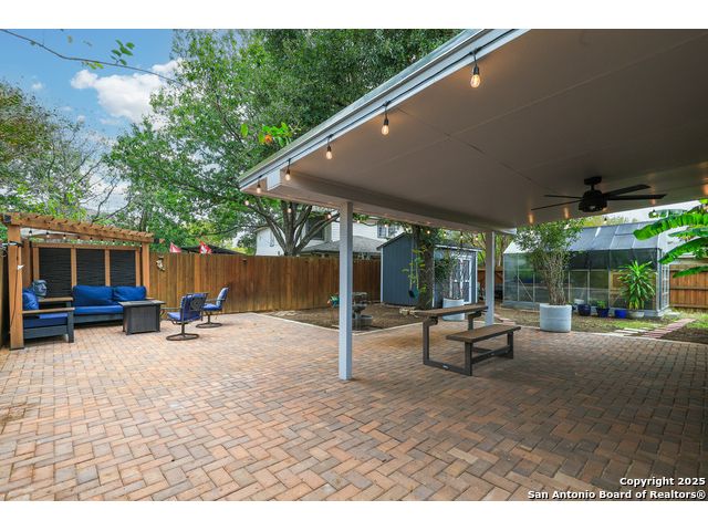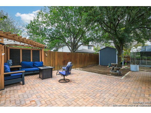 OPEN HOUSE! Sunday December 7, 2025 from 1-4 PM. Nestled within the peaceful, tree-lined GATED Clear Springs community of Helotes, this home blends timeless comfort with thoughtful, stylish upgrades at every turn. Mature trees and dusk-to-dawn "stagecoach-style" exterior lighting create a warm welcome, while inside, wood-look tile; 10-foot ceilings, crown molding, and wide 40-inch hallways set a tone of understated elegance. Arched windows pull natural light into the living spaces. 11 upgraded windows (installed 2023-2024) cascade your living space with natural light; softened by shades and blinds throughout. The kitchen serves as the inviting heart of the home, offering granite countertops, breakfast bar, stainless steel appliances including a gas range, built-in microwave, and farmhouse sink. An under-sink osmosis system (installed 2022) ensures crisp, clean water, while stylish lighting adds just the right touch of polish. The adjacent study, framed by double doors, provides a quiet, productive retreat. In the living room, a gas fireplace with a cedar mantle and ceramic log creates a cozy focal point, complemented by custom built-ins for storage and display. Tucked nearby is a cedar-plank-lined closet, part storage, part conversation piece - constructed with partial Faraday-cage protection. The primary suite is a retreat of its own. Exceptionally spacious and wrapped in fresh carpet, it offers room to unwind with ease (carpet installed in 2021) The large walk-in closet enhances everyday convenience, and the en-suite bath elevates the experience further with a double vanity, a separate shower, and a garden tub set against a chic mosaic-style tile wall - a custom design element that rises well above typical builder-grade finishes, bringing a boutique-spa feel into your private space. Additional bedrooms are generous as well. One features its own private entry to the guest bathroom with a granite countertop shower/tub combo, perfect for visitors. Another includes a built-in Murphy bed and shelving for flexible use. A large laundry room with built-in shelving keeps daily life organized, while the garage delivers function with a painted floor, attic access, garage door opener, and an installed water softener/filtration system. The backyard unfolds into a private outdoor haven surrounded by a wide-plank cedar fence with solar lighting for complete seclusion. A 19'x16' covered patio opens onto an expansive 30'x29' paver patio, perfect for gatherings, grilling, or quiet evenings outside. Two storage sheds (10'x8' and 6'x 5'), a 16'x10' greenhouse, and flagstone walkways down both sides of the home add charm and practicality. Recent improvements, just to name a few, solar attic vent added August 2025, a new roof in September 2025, a 2021 water heater, and 2021 bedroom carpet offer peace of mind and long-term value. This home isn't just beautifully maintained; it's thoughtfully crafted for comfort, privacy, and everyday luxury. Every space invites you to linger a little longer and imagine coming home.