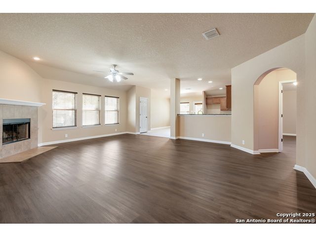 Welcome home to this beautiful 3-bedroom, 2-bath property with a dedicated office, built in 2011 and perfectly situated on a spacious corner lot near the Alamo Ranch shopping center with quick access to Loop 1604 and Hwy 151. This open-concept floor plan features a stunning kitchen complete with a large island and a cozy fireplace-ideal for gatherings. You'll love the generous backyard, perfect for relaxing or entertaining, and the grand entryway with impressive high ceilings that create an inviting first impression. Additional highlights include a 3-car garage and a prime location less than 7 minutes from SeaWorld. A must-see!