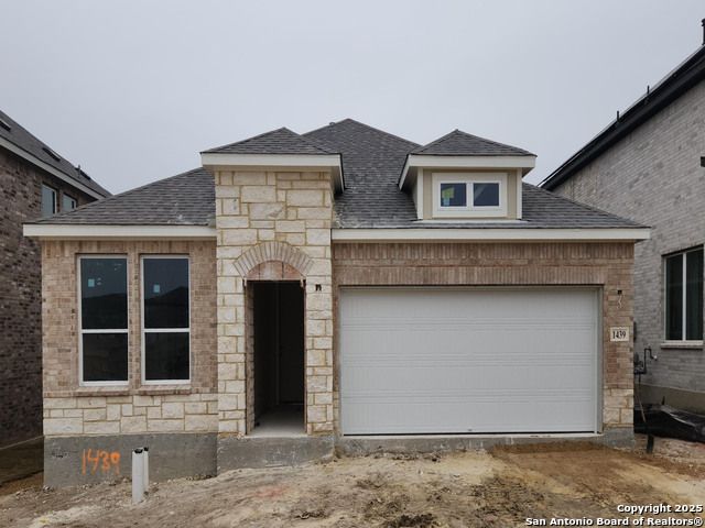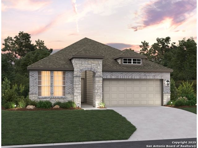 Charming one and a half story home designed for comfort and convenience. The gourmet kitchen offers abundant counter space and flows into a spacious family room with two large windows that frame views of the backyard and fill the space with natural light. The secluded primary suite provides a peaceful retreat with an oversized shower, relaxing garden tub, double vanities, and a generous walk-in closet. Three secondary bedrooms each feature their own walk-in closet and share a well laid out bath that makes morning routines easy. A covered patio extends the living space outdoors and is perfect for relaxing or entertaining. The home also includes a full sprinkler system for easy lawn maintenance and year-round curb appeal. This home is part of our Sapphire Collection - bold and full of personality. Bright whites and deep blues mix with layered textures for a striking effect. Sapphire is for those who love to host, make a statement, and live with confident, unmistakable style. This home is in Arcadia Ridge, a community with 200 acres of open space, resort-style pool, playgrounds, trails, and easy access to shopping, dining, and major employers.