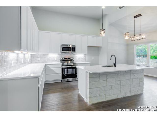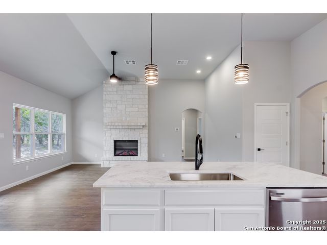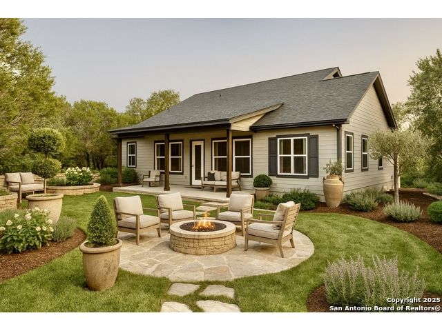 Discover this beautiful new-build Hill Country retreat on a generous 0.5-acre homesite in desirable Fischer, Texas. Built by the highly reputable Southern Charm Builders, this single-story home offers 1,859 sq. ft. of quality craftsmanship and thoughtful design. With 4 bedrooms and 2 baths-including a flexible fourth bedroom that can serve as a private study-this home blends comfort, functionality, and style. Step inside to an inviting open-concept floor plan with hard surface flooring throughout, creating a seamless flow for everyday living. The chef-inspired kitchen features abundant cabinetry, extensive hard-surface countertops, and a spacious walk-in pantry-ideal for entertaining or perfecting your favorite recipes. Enjoy Hill Country living at its finest with an L-shaped covered front porch, perfect for seasonal decor or relaxing with your morning coffee. The home also boasts a large covered back patio overlooking a blank-canvas backyard-a clean slate ready for your personalized landscape design, garden, or outdoor oasis. Perfectly positioned between Austin and San Antonio, this property offers convenient access to both airports and sits near some of the most sought-after towns in Texas, including Wimberley, New Braunfels, Gruene, San Marcos, and Dripping Springs. With no mandatory HOA, you'll enjoy both freedom and flexibility in how you use your space. This exceptional new construction by Southern Charm Builders combines modern comfort, Hill Country charm, and a prime location-ready to welcome its first owner.