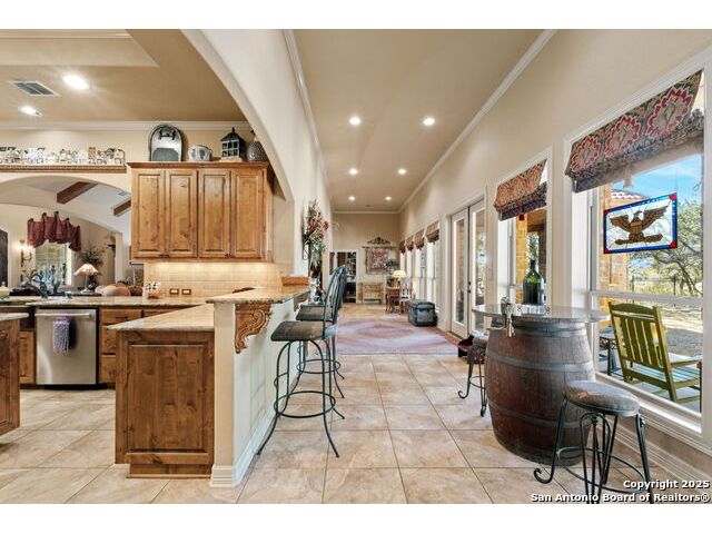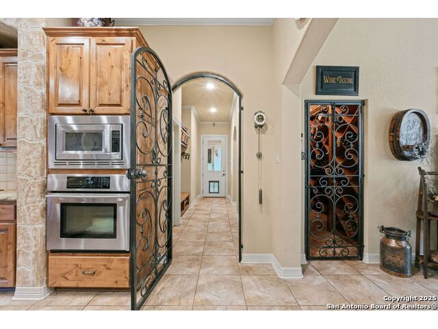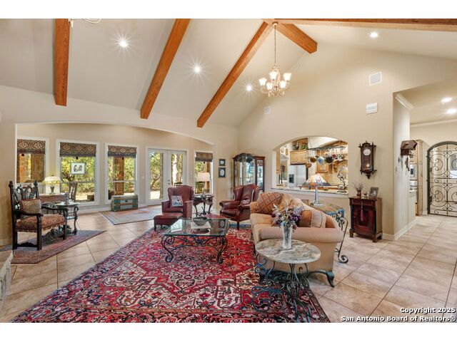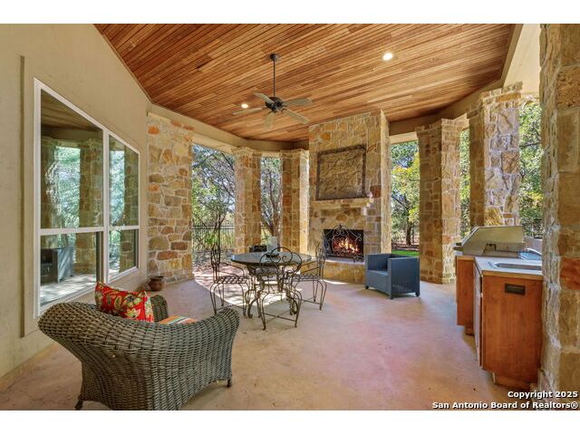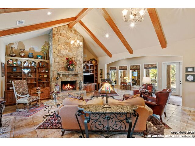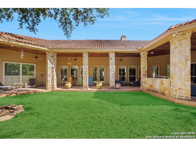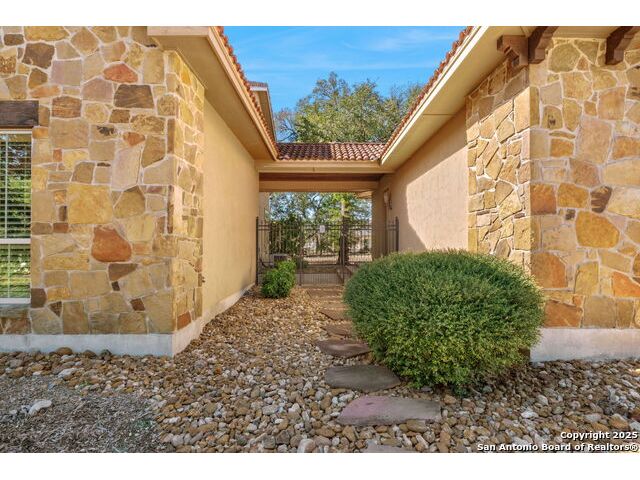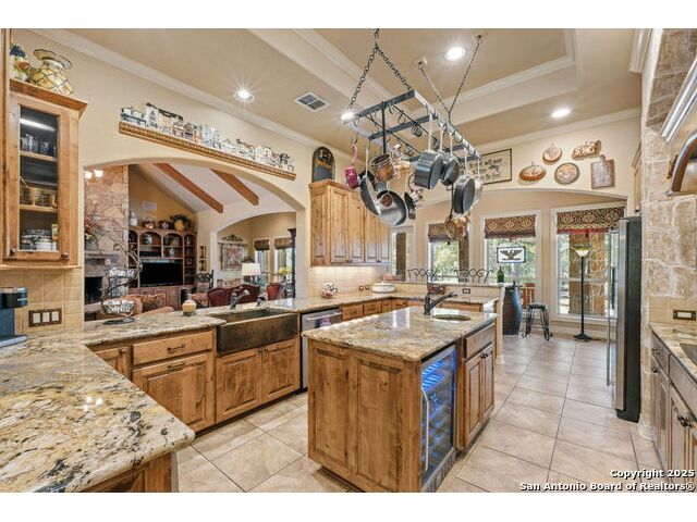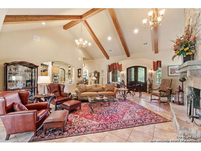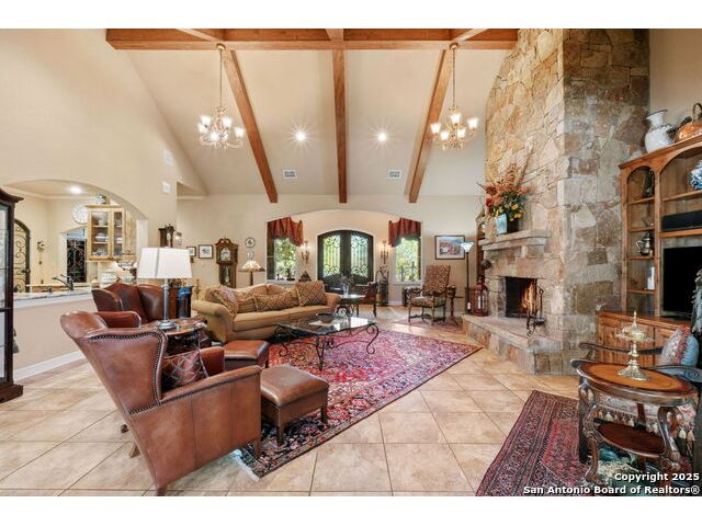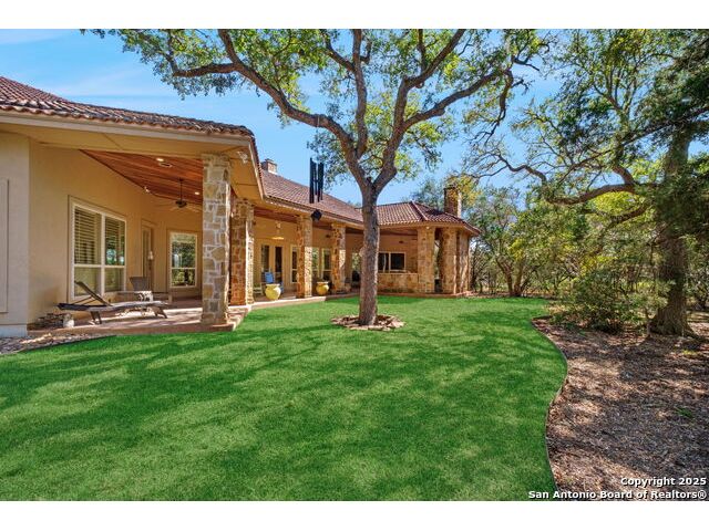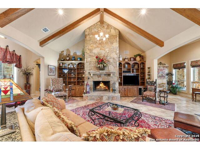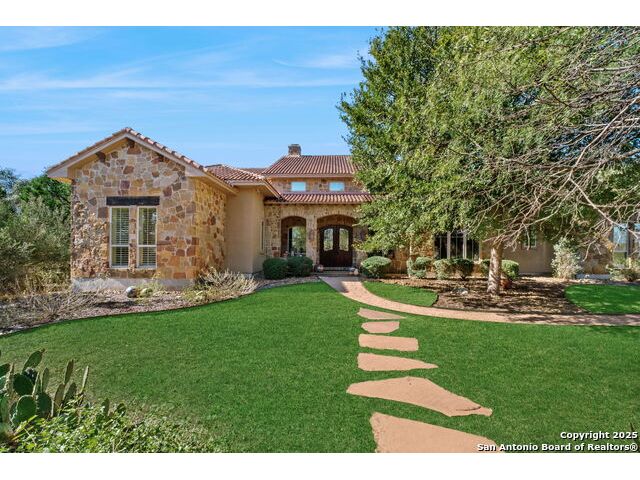 Welcome to Your Texas Tuscan Dream Home! Where timeless elegance meets modern comfort, this exceptional residence is the one you've been searching for. Nestled on a private 1.19-acre estate, this custom-crafted retreat blends Tuscan charm with Texas craftsmanship. From the moment you arrive, the home captivates with its warm and inviting exterior - a harmonious blend of Lampasas sandstone, textured stucco, clay tile roofing, and handcrafted wrought iron details that set the tone for what lies within. Step inside to discover architectural artistry at every turn. The expansive great room impresses with soaring wood-beamed ceilings, a dramatic stone fireplace, and built-in sound system - perfect for everyday living and effortless entertaining. With three spacious bedrooms, including a serene master suite, plus a versatile library/office with floor-to-ceiling bookshelves, there's space for both productivity and retreat. Movie nights come alive in your dedicated theater room, while the formal dining room, crowned by an awe-inspiring cupola and flanked by a 500-bottle wine cellar - is tailor-made for unforgettable dinner parties. The gourmet kitchen is a chef's dream, featuring premium appliances, granite countertops, farmhouse sink, oversized island with wine cooler, and thoughtful touches throughout. Whether you're preparing an intimate meal or hosting a celebration, this kitchen delivers. Outdoors, enjoy the peace and privacy of mature live oaks, cedar elms, and ash juniper. The expansive covered patio is an entertainer's paradise, complete with an outdoor kitchen, stone fireplace, and dining area perfect for alfresco evenings under the stars. Every detail in this home speaks to quality and intention - from hammered copper sinks and artisanal textures to the seamless indoor-outdoor flow. This is more than just a home - it's a lifestyle. A sanctuary inspired by Tuscan villas, built with the heart of Texas craftsmanship. Schedule your private showing today and experience the elegance for yourself.