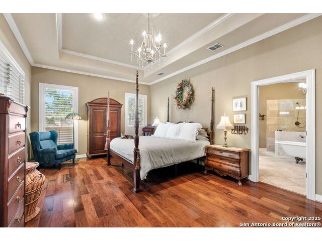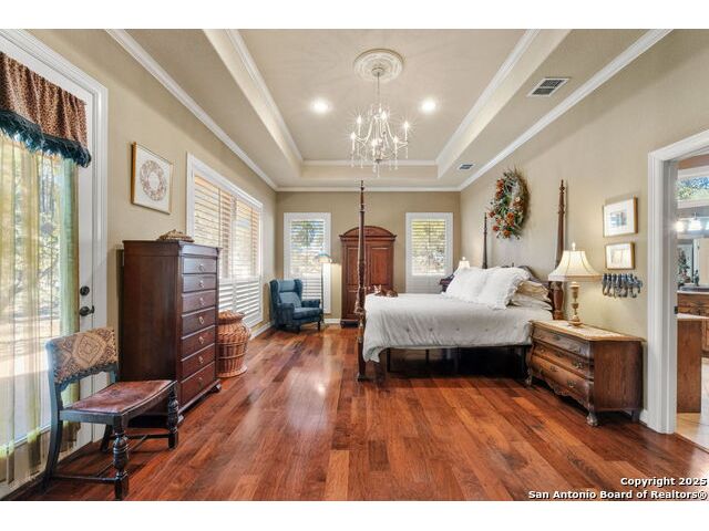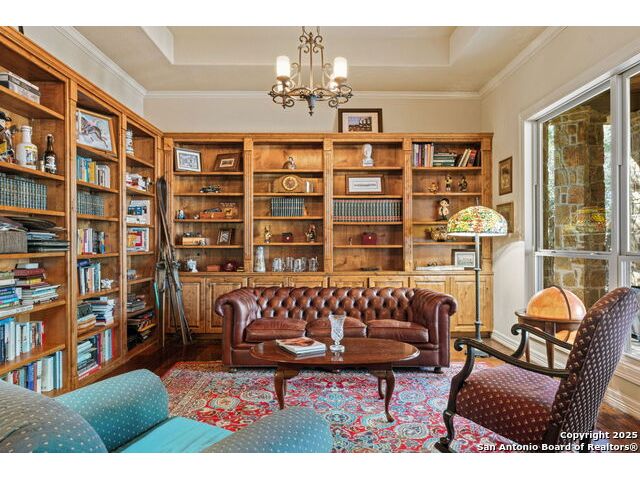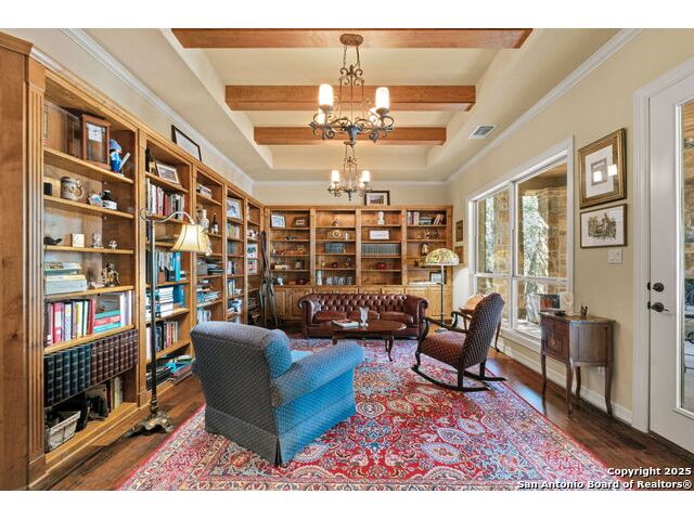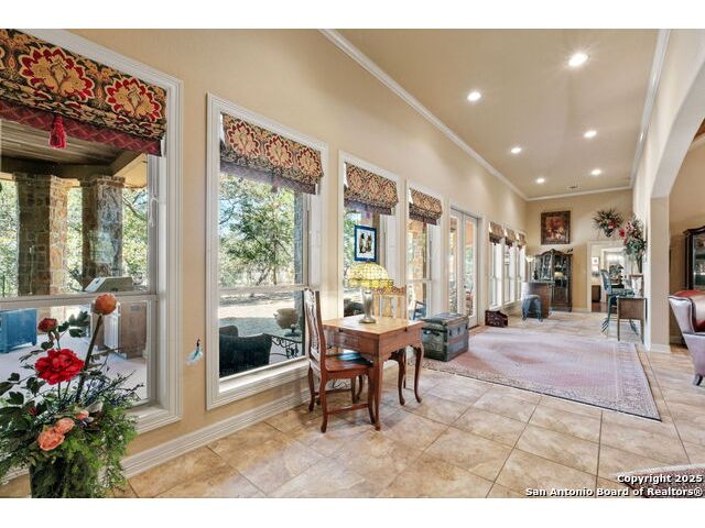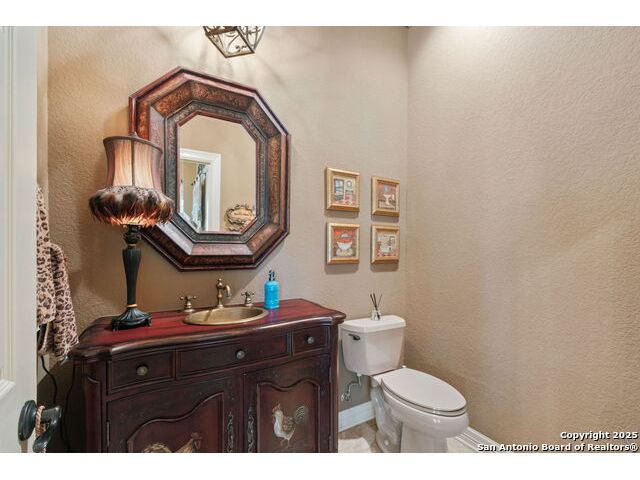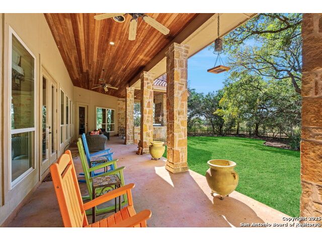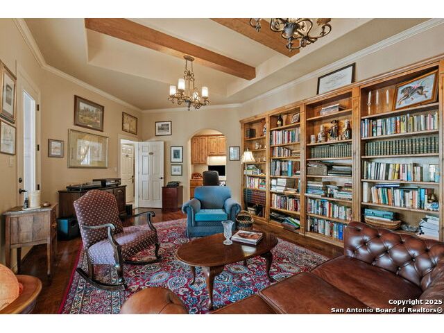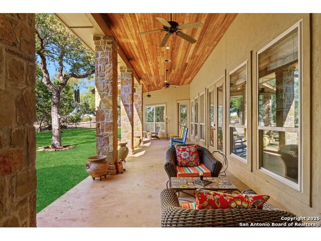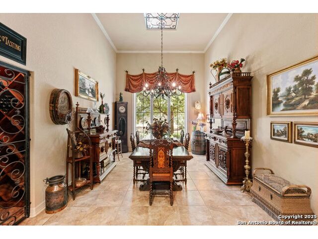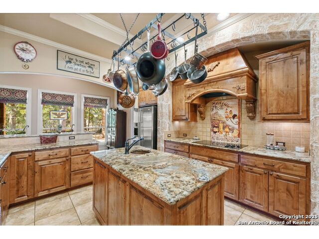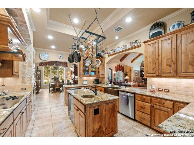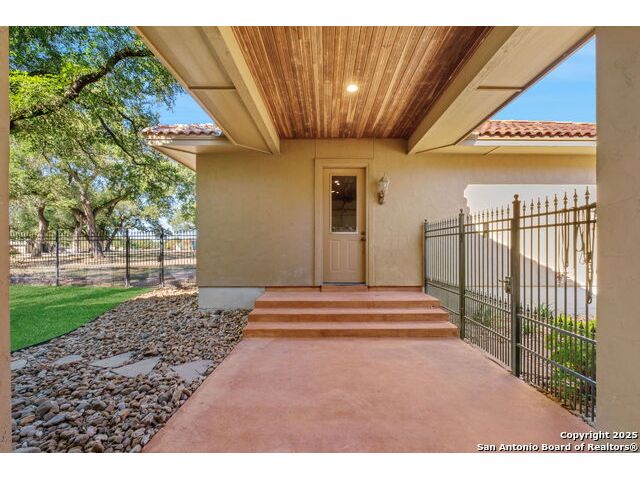 Welcome to Your Texas Tuscan Dream Home! Where timeless elegance meets modern comfort, this exceptional residence is the one you've been searching for. Nestled on a private 1.19-acre estate, this custom-crafted retreat blends Tuscan charm with Texas craftsmanship. From the moment you arrive, the home captivates with its warm and inviting exterior - a harmonious blend of Lampasas sandstone, textured stucco, clay tile roofing, and handcrafted wrought iron details that set the tone for what lies within. Step inside to discover architectural artistry at every turn. The expansive great room impresses with soaring wood-beamed ceilings, a dramatic stone fireplace, and built-in sound system - perfect for everyday living and effortless entertaining. With three spacious bedrooms, including a serene master suite, plus a versatile library/office with floor-to-ceiling bookshelves, there's space for both productivity and retreat. Movie nights come alive in your dedicated theater room, while the formal dining room, crowned by an awe-inspiring cupola and flanked by a 500-bottle wine cellar - is tailor-made for unforgettable dinner parties. The gourmet kitchen is a chef's dream, featuring premium appliances, granite countertops, farmhouse sink, oversized island with wine cooler, and thoughtful touches throughout. Whether you're preparing an intimate meal or hosting a celebration, this kitchen delivers. Outdoors, enjoy the peace and privacy of mature live oaks, cedar elms, and ash juniper. The expansive covered patio is an entertainer's paradise, complete with an outdoor kitchen, stone fireplace, and dining area perfect for alfresco evenings under the stars. Every detail in this home speaks to quality and intention - from hammered copper sinks and artisanal textures to the seamless indoor-outdoor flow. This is more than just a home - it's a lifestyle. A sanctuary inspired by Tuscan villas, built with the heart of Texas craftsmanship. Schedule your private showing today and experience the elegance for yourself.
