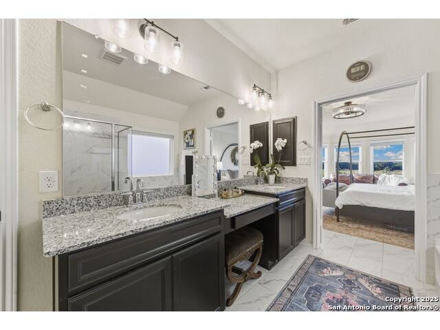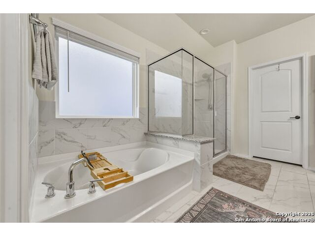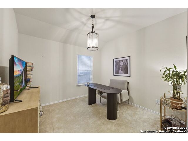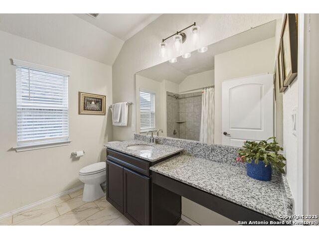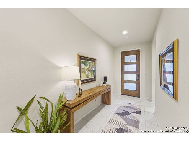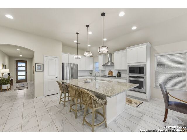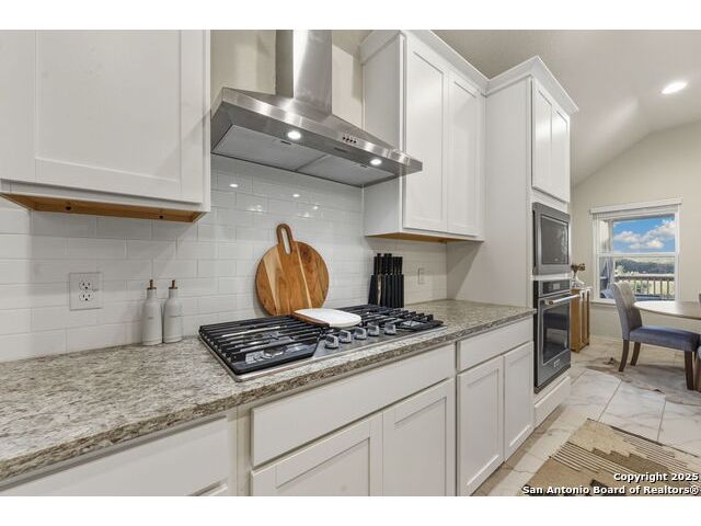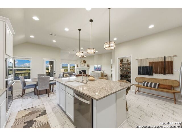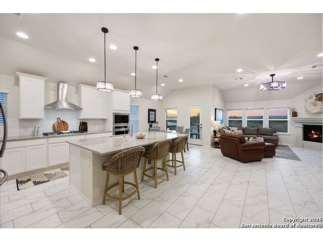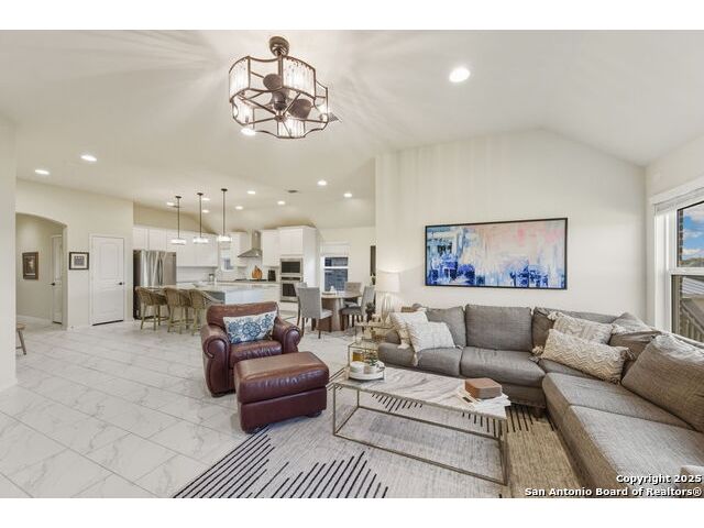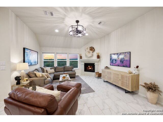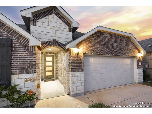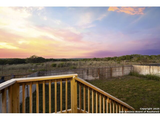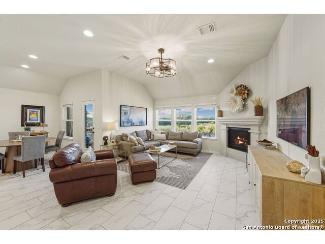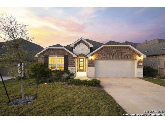 Welcome to this beautifully maintained 4 bedroom, 2 bath Pulte home in the highly sought-after Veramendi community. Built in 2023, this spacious one-story offers 2,129 sq ft of comfortable, open-concept living with thoughtful design throughout. One of the standout features of this property is its rare homesite, backing to private land with no current rear neighbors, providing an exceptional sense of privacy and peaceful Hill Country views. The heart of the home is the bright and inviting kitchen, featuring a large island, gas cooking, stainless steel appliances, and plenty of cabinet and counter space. The kitchen opens seamlessly into the dining area and living room, where abundant natural light and a cozy fireplace create the perfect setting for everyday living and gathering. The private primary suite is generous in size, offering space for a seating area and a bay window that frames scenic views. The ensuite bath includes a soaking tub, separate shower, and double vanity. The home also features four dedicated coat, storage, and utility closets that provide exceptional organization and convenience throughout the layout. Three secondary bedrooms offer flexibility for guests, office space, or hobbies. Additional highlights include tile flooring in main areas, carpet in bedrooms, a water softener, and a covered back patio overlooking the fully fenced yard. Located in Veramendi, residents enjoy access to community amenities including a pool, multiple parks, playgrounds, and walking trails, all within minutes of schools, shopping, and dining in New Braunfels. This home combines modern comfort, thoughtful design, and a rare private setting. Do not miss the opportunity to make it yours.