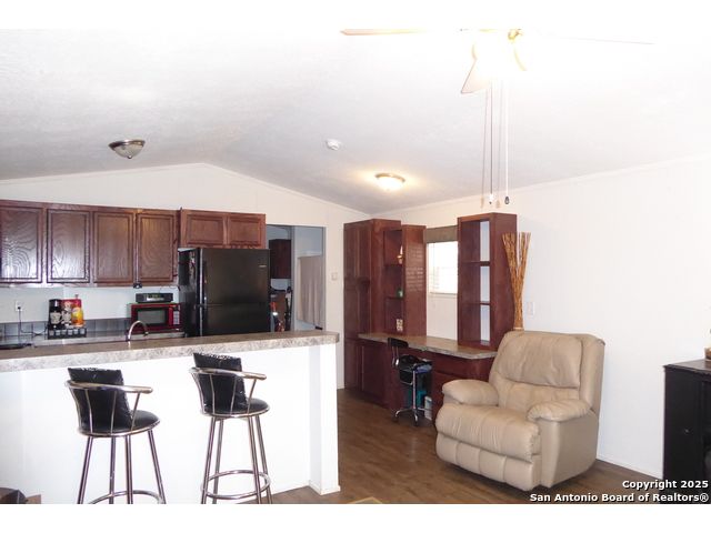 This charming tiny home, barely lived in, boasts an open floor plan and high ceilings. The gourmet kitchen includes a breakfast bar that flows seamlessly into the living area, making it perfect for both entertaining and meal prep. Sleek black Frigidaire appliances complete the functional and stylish kitchen space. Perfect starter home for new homeownership, or just an additional dwelling to place on your property, piece of land, in-law quarters, guest house, office or a cabin for your second home away from home! **ONLY MANUFACTURED HOUSE IS FOR SALE**BUYERS MUST SECURE THEIR OWN TRANSPORTATION TO HAVE HOUSE MOVED**
