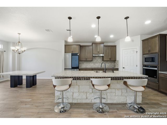 Welcome to this exquisite 4-bedroom, 4-bath home offering over 3,100 sq ft of thoughtfully designed living space. This beautifully crafted four-sided brick residence features an inviting open floor plan with soaring ceilings, abundant natural light, and seamless flow for everyday living and entertaining. The primary suite is conveniently downstairs, along with a secondary bedroom/full bath-ideal for guests or a private home office. The gourmet kitchen offers granite countertops, ample cabinetry, and a spacious island that opens to the dining and living areas. Upstairs, a large game room provides flexible space for media, play, hobbies, or fitness. All bedrooms are generously sized, and with four full baths, everyone enjoys comfort and privacy. Level lot with private fence and a cover patio to enjoy evenings. This home blends style, functionality, and exceptional value-a must-see!