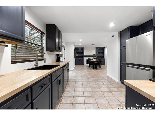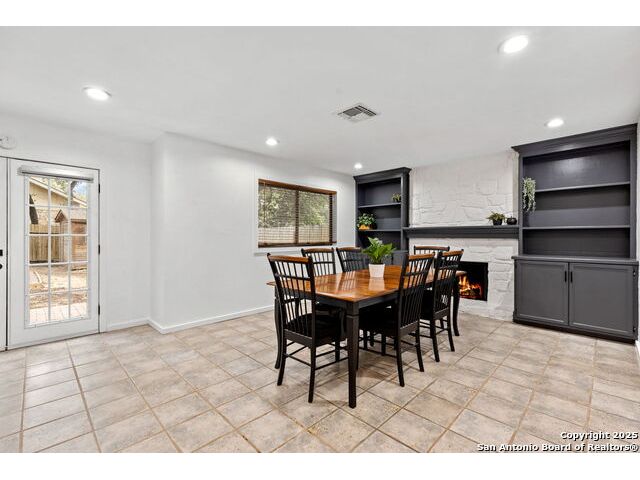 Welcome to 5602 Timber Peak - a beautifully updated, move-in ready home that blends modern finishes with thoughtful upgrades, offering outstanding comfort and value throughout. Step inside to discover gleaming new flooring throughout the entire second floor and a natural-wood switchback staircase with thick modern treads and sleek black-iron balusters. The living spaces are bright and inviting, with dimmable recessed lighting and an airy sense of flow. The heart of the home - the kitchen - has been completely refreshed, featuring stainless-steel appliances (Whirlpool dishwasher and four-door refrigerator from 2022, and GE range from 2021), a stunning sealed butcher-block countertop, a modern stainless-steel sink with commercial-style faucet, and freshly painted cabinetry, all ready to accommodate your culinary ambitions. Adjacent to the kitchen, the dining room impresses with a white-stone fireplace flanked by built-ins, and double French doors with window grids and blackout blinds leading to the backyard - perfect for indoor-outdoor entertaining or serene weekend mornings. Upstairs, the primary suite feels like a private retreat. You'll enjoy a spa-style walk-in shower with cedar accents and a multi-head rain system (ceiling waterfall + wall-mount showerhead), a floating double-sink vanity under tall ceilings with sconce lighting, and sleek, waterproof slate-style LVP flooring in the shower and vanity areas. The oversized walk-in closet is fully built out for organization, and the bedroom itself features a 12-foot peaked ceiling with a faux wood beam, built-in window bench, and a whisper-quiet six-speed ceiling fan with adjustable lighting and temperature controls. Practical upgrades abound too: efficient energy-saving SunTex 80 window screens, a 2020 Rheem 40-gallon natural-gas water heater, a Nest thermostat connected to a 2013 central HVAC system (heat, cool, fan), plus fresh exterior paint and a limewashed stone veneer for curb appeal. Outside, a mature willow oak shelters a spacious backyard with a brick patio and large covered storage shed - an ideal backdrop for relaxing evenings or weekend gatherings. The garage is beautifully finished, with drywall, six recessed light fixtures, and exterior sconce lighting by the doors. If you're seeking a home that combines refined design, turnkey comfort, and thoughtful upgrades - all within a warm, inviting atmosphere - 5602 Timber Peak is a rare find.