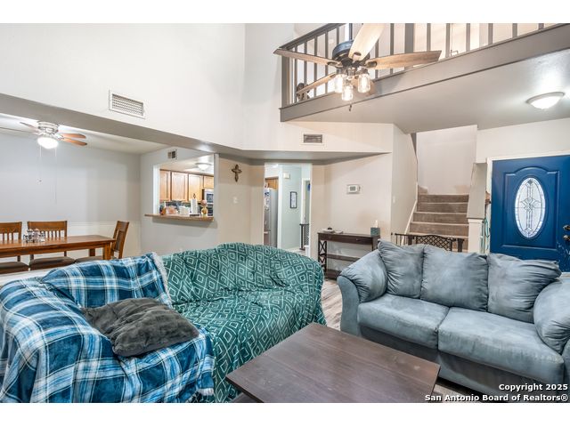 Welcome to this beautiful, move in ready two story home tucked away at the end of a private cul-de-sac, just minutes from Lackland AFB. Step inside to an inviting open floor plan featuring vaulted ceilings, a cozy fireplace, upgraded flooring, and a spacious living and dining area perfect for gatherings. The kitchen offers ample counter space, stainless steel appliances, and an open layout ideal for everyday living and entertaining. Upstairs you'll find 3 bedrooms and a versatile loft. The converted garage provides additional flexibility to accommodate your lifestyle needs. Enjoy a spacious backyard designed for outdoor living, relaxation, and entertaining. Conveniently located near shopping centers, restaurants, and major conveniences, this home offers the perfect blend of comfort and accessibility. Don't miss your chance to make it yours!