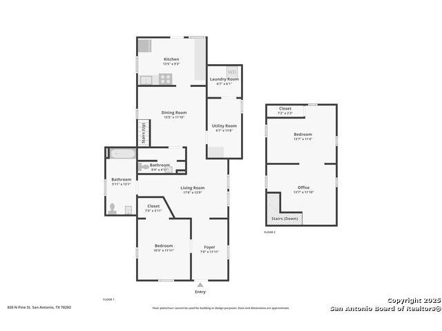 Welcome to 826 N. Pine in the heart of the Dignowity Hill Historic District, a charming Victorian cottage featuring modern amenities which honor the heritage of the home. This incredible shotgun bungelow features recently updated central heat & air, new paint and flooring, a new tin roof, and inside laundry and storage rooms. In addition to its downstairs bedroom and living spaces with their soaring ceilings, this house provides a gorgeous, flexible second-floor space which can function as a bedroom, an office or both. While living on the premier street in one of San Antonio's most desirable lifestyle neighborhoods, you'll enjoy evenings on your huge deck with views of your tremendous, shaded backyard - such a rarity for a house so close to downtown! Just a short walk to Lockwood-Dignowity Park, the Hays Street Bridge, and dozens of locally owned businesses, this residence is only minutes from the Pearl and everything downtown San Antonio has to offer. This beautiful home is your entrance to the city life you've been dreaming about!