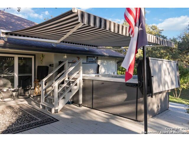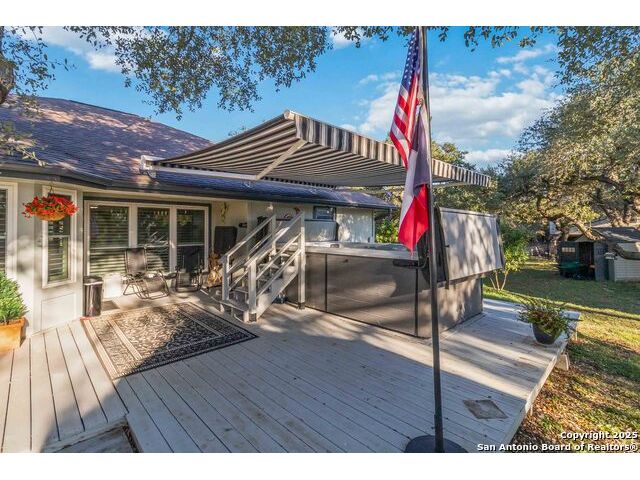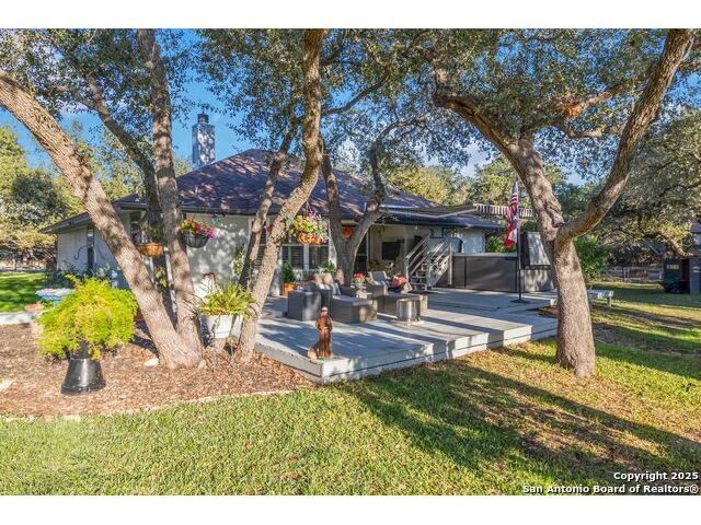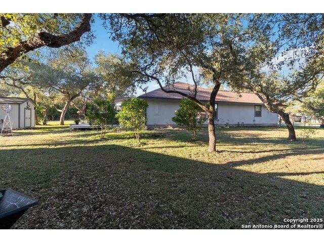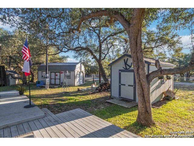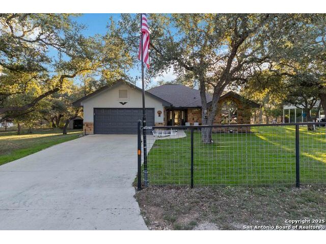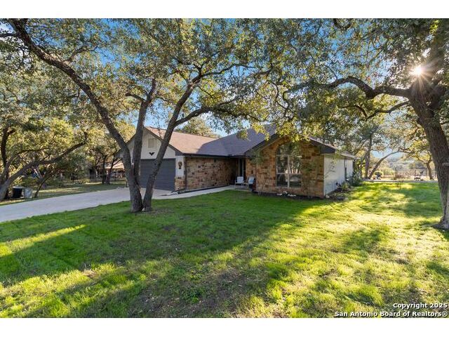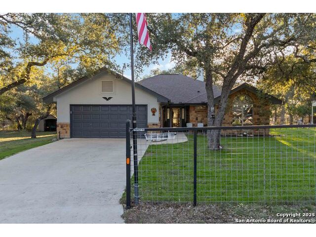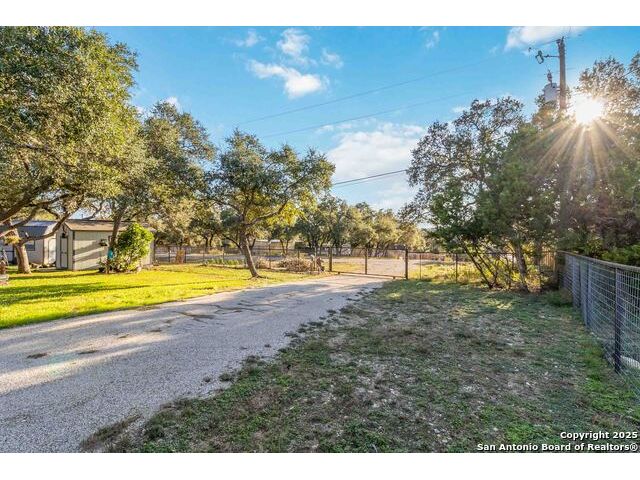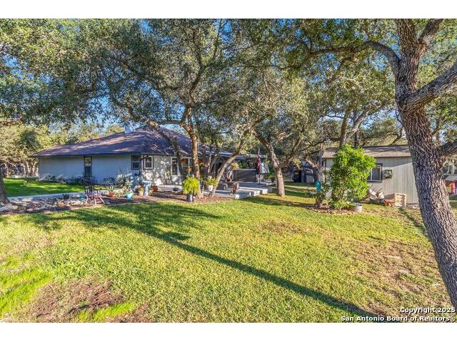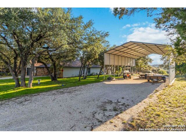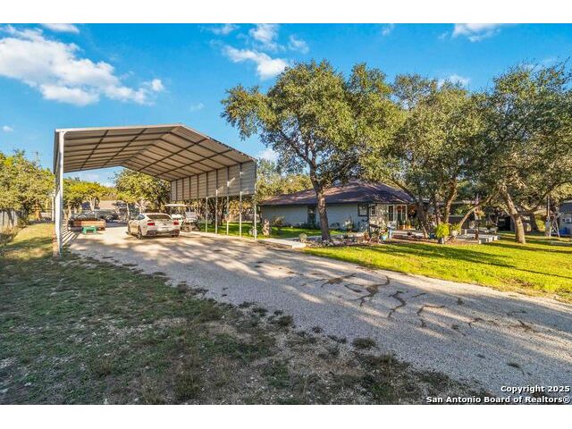 Welcome to a well-kept 3 bedroom, 2 bath home set on a rare triple lot in Canyon Lake. The property runs street to street from Grandview to Fairway and is fully fenced with two electric gates, each with remote access. The pull-through covered parking makes day-to-day living simple, with ample space for an RV, pontoon boat, trailers and extra vehicles. Inside, the home feels warm and inviting with an open floor plan, arches, rounded corners and quality craftsmanship throughout. The kitchen offers generous cabinet storage, tilt-out windows, a water softener, a deionized water faucet and all new windows along the south side of the home. The backyard is a true retreat with mature shade trees, two storage buildings, wide open space and a swim spa for year-round relaxation. Located near Boat Ramp 5 and close to groceries, dining and Hill Country recreation, this property delivers space, privacy and a well-designed layout inside and out. A standout find in a quiet pocket of Canyon Lake.