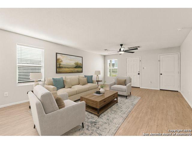 This beautiful 3-bedroom, 2-bath, 2-car garage home in the Willow View subdivision offers the perfect blend of style, space, and functionality. Featuring an open concept floorplan, ideal for both entertaining and everyday living. Bright, airy living area that flows seamlessly into the dining space and stunning kitchen. The kitchen is equipped with granite countertops and stainless steel appliances, making meal prep and entertaining effortless. Luxury vinyl plank flooring throughout the main areas complements the cozy carpeted bedrooms, creating a warm and inviting atmosphere. The primary suite boasts a private bath and walk-in closet, providing a serene retreat. Outside, the backyard offers ample space for relaxation or hosting gatherings. Recent updates include a new fence, fans, dog run and upgraded fixtures. The roof is only 2-years old! The HOA for Willow View is creating a park to accompany the community pond to support community get events. Move-in ready and conveniently located in the heart of Converse, this home is just minutes from Randolph Air Force Base, with quick access to major highways, shopping, and schools. Perfect for first-time buyers, those downsizing, or anyone seeking a home in a prime location, this residence combines modern comforts with a convenient lifestyle.