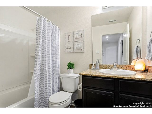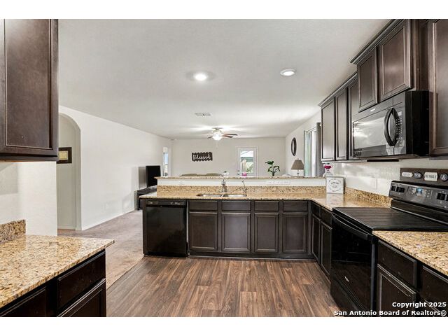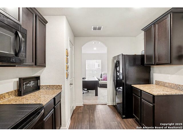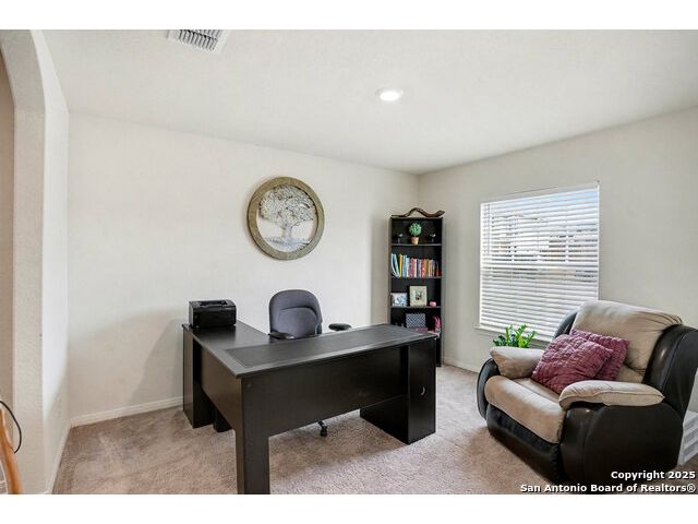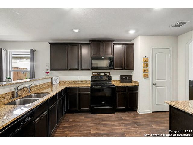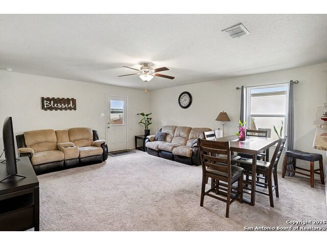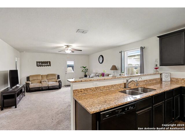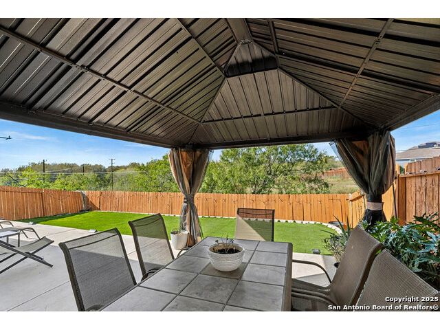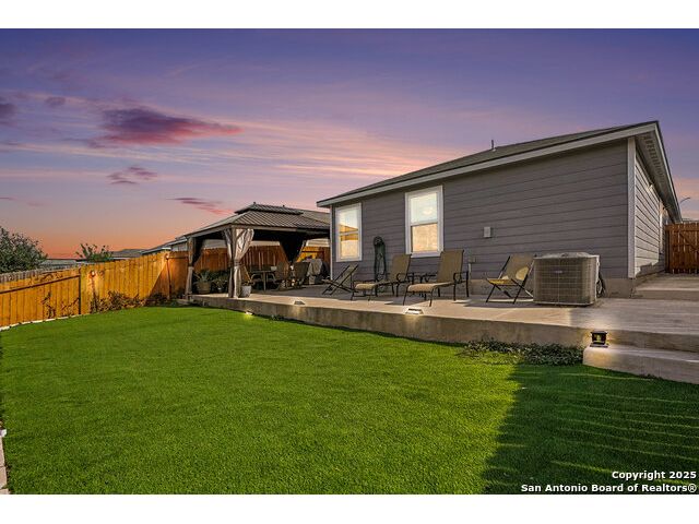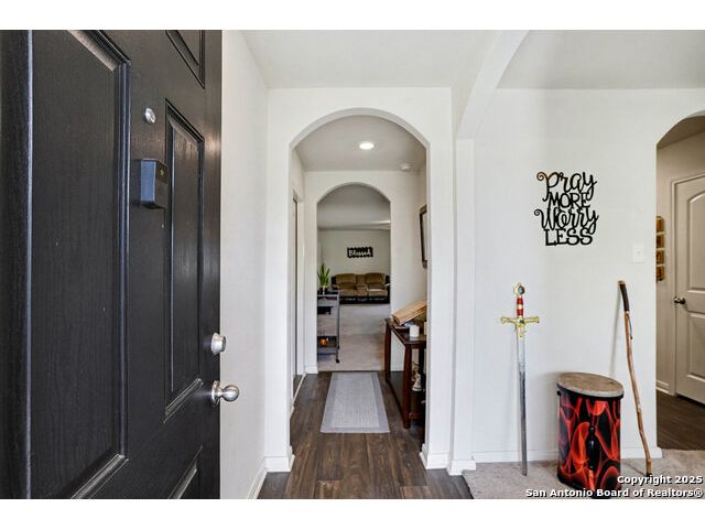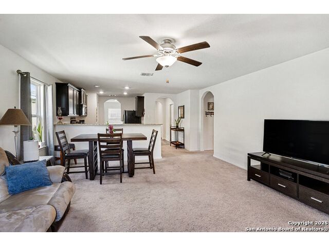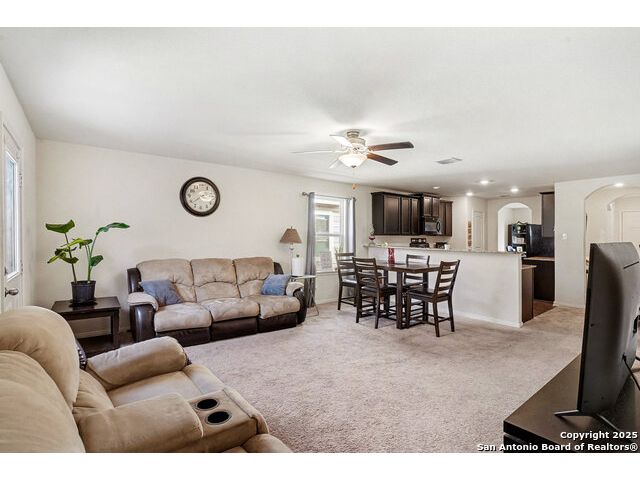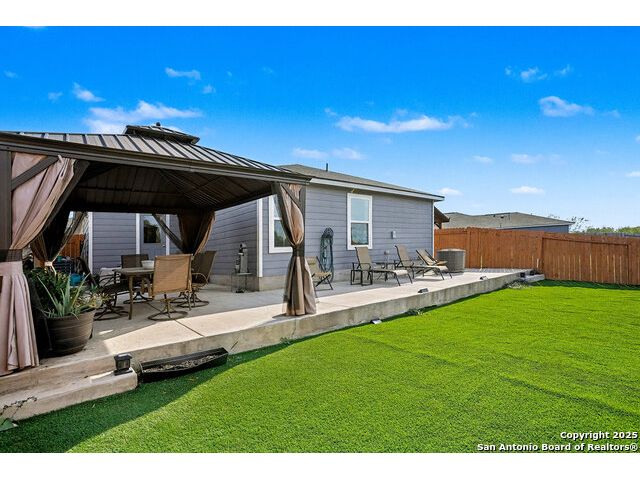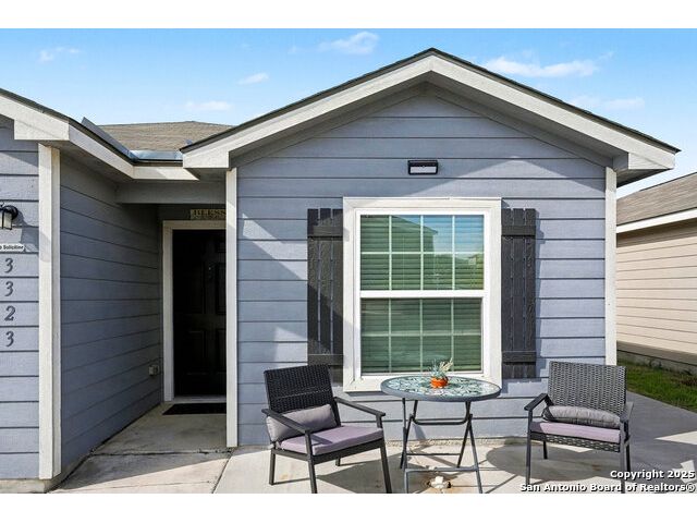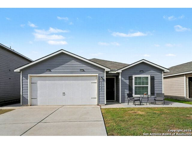Discover inviting comfort in this beautifully maintained newer construction home, offering 3 bedrooms, 2 bathrooms, and a 2-car garage in the East Central ISD. A spacious entry foyer welcomes you inside, setting the tone for the home's bright and thoughtfully designed layout. Abundant natural light fills the open-concept living, dining, and kitchen areas, creating a warm and welcoming atmosphere. The kitchen is a standout, featuring granite countertops, dark stained cabinetry, quality appliances, and clear views into the main living spaces-ideal for everyday living and entertaining. Charming arched entryways add architectural interest throughout the home, while the split floor plan enhances privacy. The primary suite offers generous space, an ensuite bathroom also with granite countertops, and a walk-in closet. Secondary bedrooms are comfortably sized and well-appointed. Luxury vinyl plank flooring and carpet provide a balanced blend of style and comfort. Additional highlights include a separate laundry room, ample storage with walk-in closets, and a smart, functional layout designed for modern living. Step outside to enjoy a nicely sized level up backyard with a retention wall, turf and a pergola perfect for relaxing or hosting outdoor gatherings. Located near HWY 87, this home delivers convenience, functionality, and timeless style in the sought-after Foster Meadows subdivision.