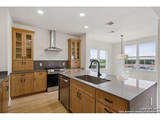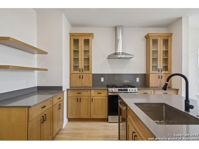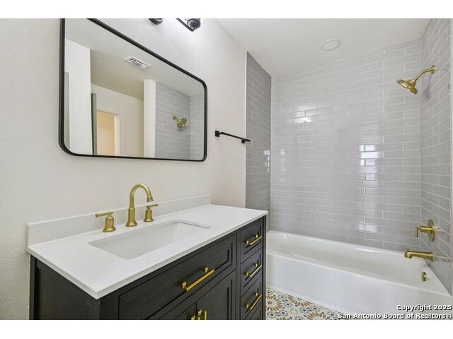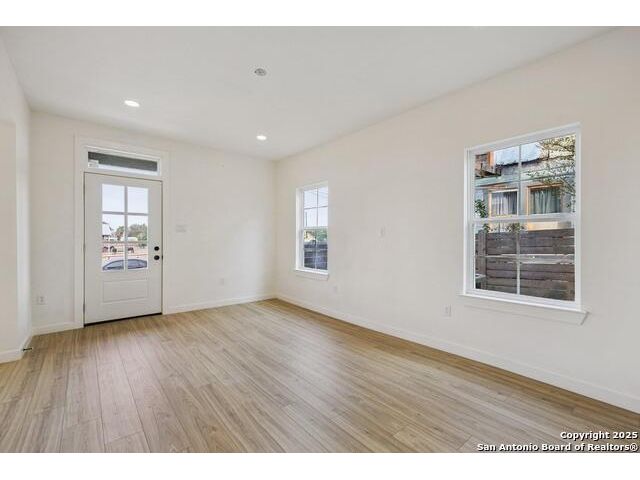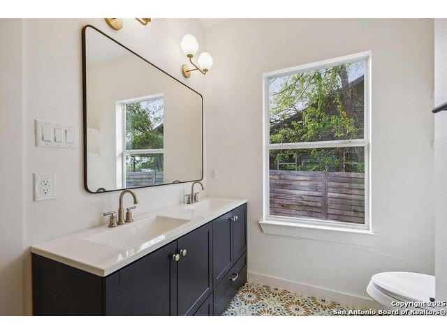 Welcome to this beautifully renovated home in the heart of San Antonio. Situated on a spacious .118-acre lot, on a very quiet street, this property blends modern updates, timeless finishes, and an excellent location walkable to the Pearl and minutes from downtown! This home was taken down to the studs and features new plumbing, foundation, electrical, HVAC, roof, windows, and siding. Inside, you'll find an open floor plan with abundant natural light highlighting finishes carefully curated by professionals for lasting style and charm. The chef's kitchen is a true highlight with quartz countertops, natural wood shaker cabinets with soft-close doors and dovetail joinery, the pantry provides ample storage with pull-out drawers, a stainless sink with pull-down faucet, and top-of-the-line appliances, including a stainless steel gas range and matching dishwasher. The main-level primary suite provides a walk-in closet and spa-like bath with a double vanity, a walk-in shower, and incredible natural light. Other features include a large laundry room with cabinet storage and quartz counter tops. The remaining rooms and bathroom are upstairs accessed by a dramatic stairway lit by designer fixtures. Completing the home are ample, gated, off-street parking, a large back yard with drought-resistant grass and a beautifully xeriscaped front yard for low maintenance living. This home is move-in ready and thoughtfully designed for modern living, right in the heart of San Antonio's most desirable area.