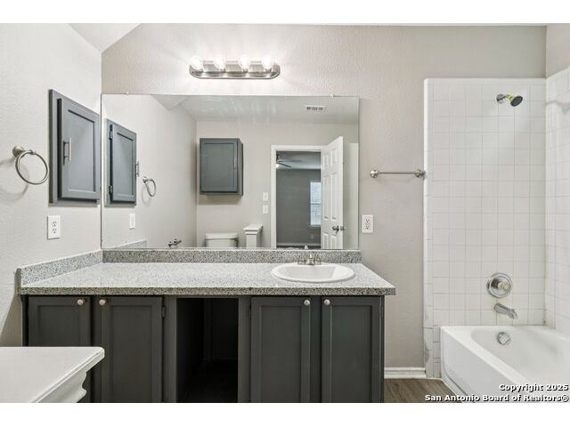 Great home in Steubing Ranch subdivision with close proximity to 1604, 281 & IH-35. This spacious home has 5 bedrooms, 3.5 bathrooms and an owner's suite downstairs. Large kitchen with appliances and a breakfast nook . The second floor includes a flex area that provides multiple uses and 4 spacious bedrooms and 2 full bathrooms. The utility room is conveniently located on the second floor. Charming backyard includes a covered porch, plenty of greenery, and year round flowers.