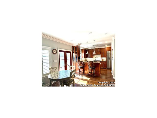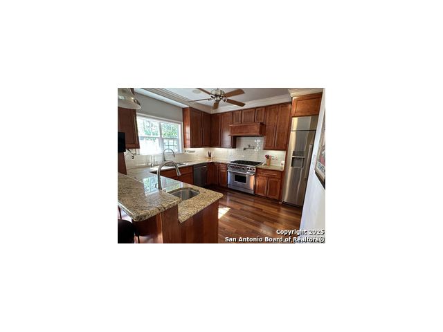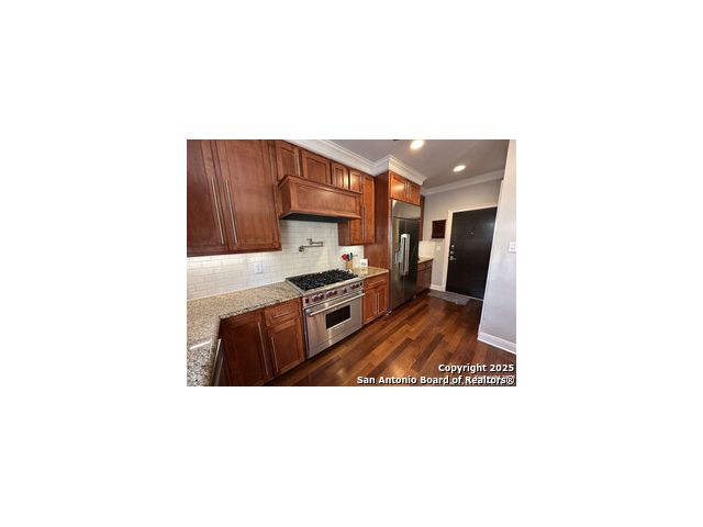 Beautifully renovated and superbly located Alamo Heights Townhome - 3 BR/3.5 Baths with Flex Room(Office-Fitness-Game). A short walk to Central Market, SA Country Club, University of the Incarnate Word, Trinity, Restaurants on Broadway, Brackenridge Park. Convenient to The Pearl, Hwy 281, IH10, Ft. Sam/JBSA, SA Riverwalk, Museums (Witte, SAMA, McNay), SouthTown, Alamo Heights schools, Botanical Gardens, SA Zoo, and more. Renovations include: * French Oak Hardwood Floors (NO CARPET REMAINS) * New HVAC (2 units) * Double-lock Patio French doors * Security System (smoke detectors, motion, windows) * Master Shower * Oversized Decor Refrigerator * Garage Door Motor * Hardy Siding * Kohler fixtures ~ Landscaping ~ Shutters ~Fans. This must see town home features large bedrooms, 2 with in-suite bathrooms, and one a Jack n' Jill. The bedrooms have spacious walk-in closets. The kitchen boasts top-of -the-line Wolf appliances, roomy pantry, coffee bar, second vegetable sink. Custom built-in bar/wine fridge, and shelves throughout. The 2-car garage is generous, Water Softener and RO stays. The Townhome is hard-wired with Cat 5 for stable internet connectivity. There is a green fenced-in area in back with shared vegetable garden.