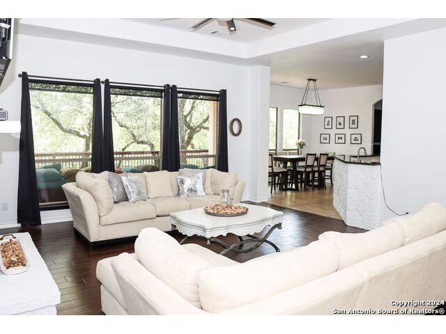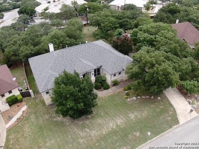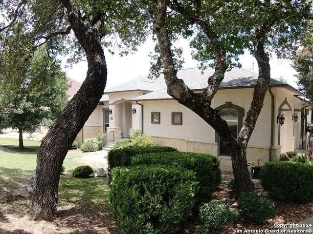 Welcome home to this stunning one-story residence built by Sierra Homes, perfectly situated on a spacious 0.78-acre lot. Featuring 4 bedrooms and 3 full baths, this property offers an ideal blend of comfort, style, and functionality. Step inside to soaring high ceilings and an open-concept floor plan that fills the home with natural light and creates an inviting, airy atmosphere. The large primary suite includes an oversized walk-in closet and a spa-like bath complete with a jetted tub-perfect for unwinding after a long day. The chef's kitchen is a true highlight, showcasing a gas cooktop, sensory touch faucet, farmhouse sink, and custom wood cabinetry for both beauty and durability. Additional upgrades include black sunscreen shades, secondary bedroom blinds, and thoughtful finishes throughout. Enjoy outdoor living at its finest in the expansive backyard featuring a covered patio and outdoor fireplace-ideal for gatherings or quiet evenings at home. The property also includes a sprinkler system and a Mosquito Nix system for enhanced outdoor comfort. Parking and storage are abundant with an attached 2-car garage plus an additional detached garage providing extra flexibility for vehicles, hobbies, or workspace. Located just minutes from The Rim, La Cantera, and only one mile from H-E-B, this home offers the perfect combination of tranquility and accessibility. Don't miss your opportunity to own this exceptional home-schedule your showing today!