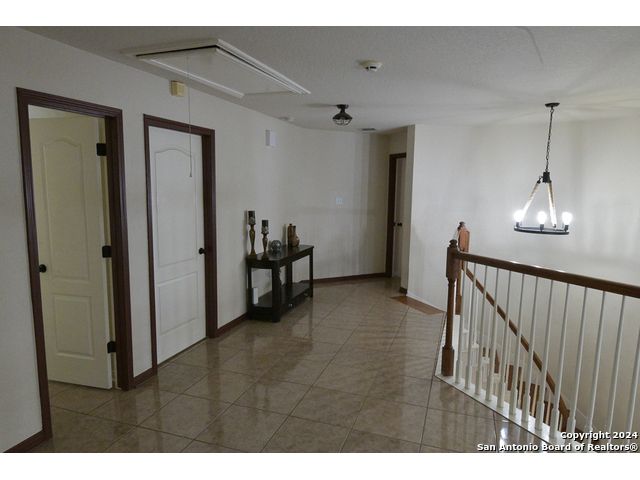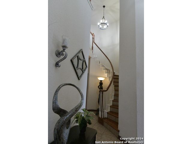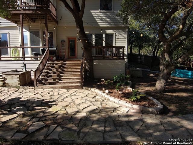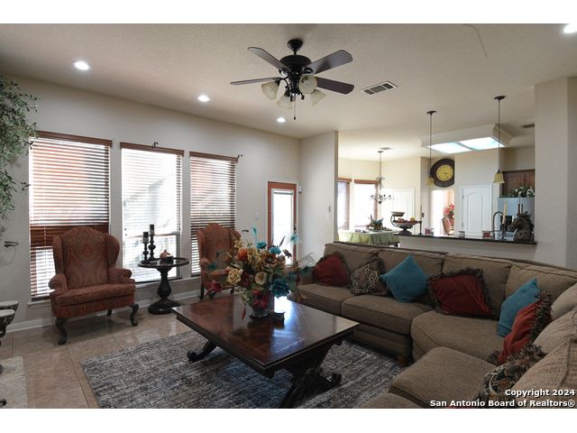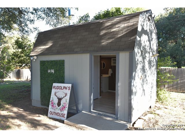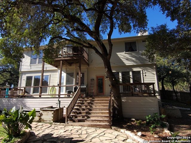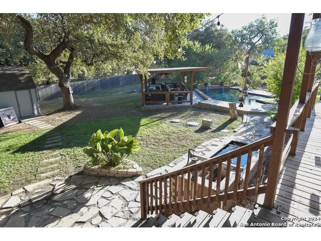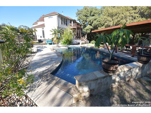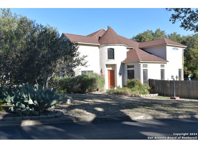 The Estates of Westover Hills presents an exclusive lifestyle with a stunning castle-style home on Barons Creek. Spanning over 3,500 sq ft on a rare .91 acre lot, this meticulously maintained residence features elegant appliances, granite countertops, and multiple living spaces. Enjoy a private deck off the master bedroom, a game room, and an office area, offering both comfort and versatility. The backyard is an entertainer's dream, boasting a beautiful swimming pool, a spacious covered patio, an expansive deck, a detached half bathroom, and a cozy fire pit-perfect for gatherings. This property seamlessly blends the tranquility of a country home with close proximity to Sea World, Lackland AFB, and major highways, making it an ideal retreat for holiday hosting and everyday living.