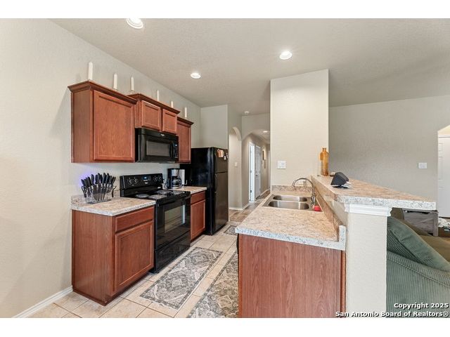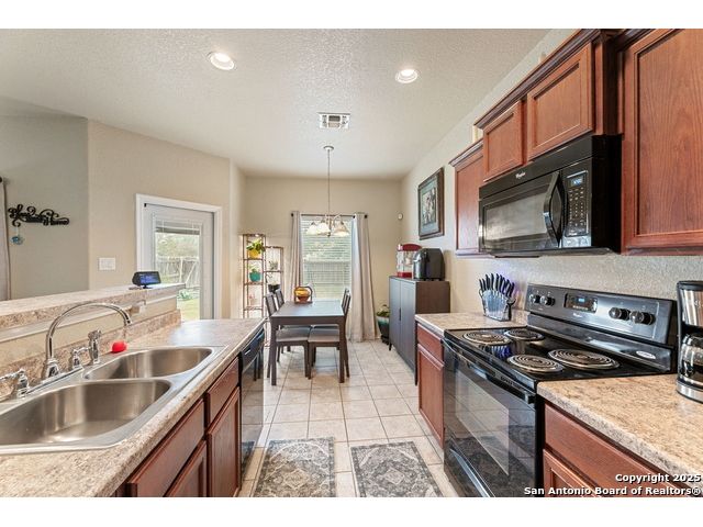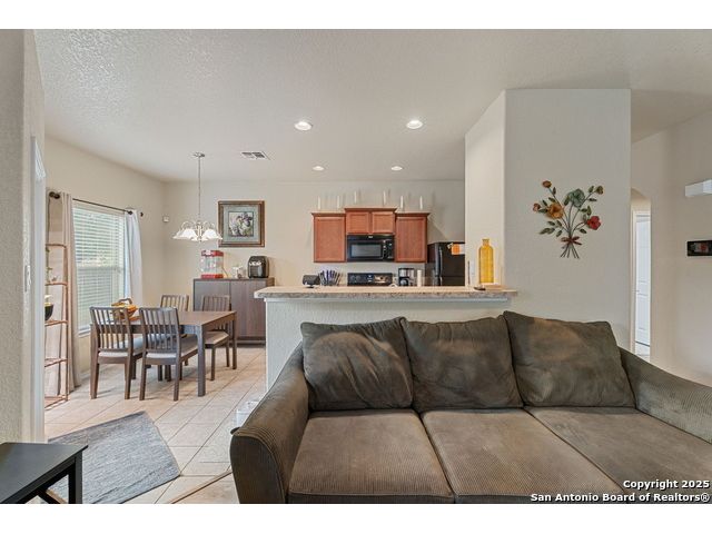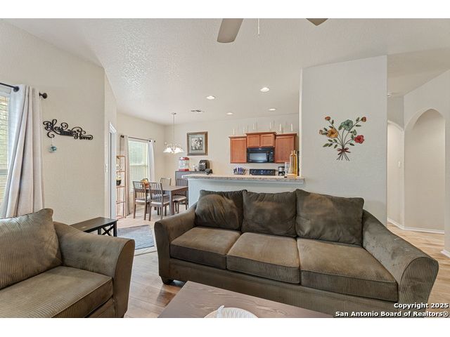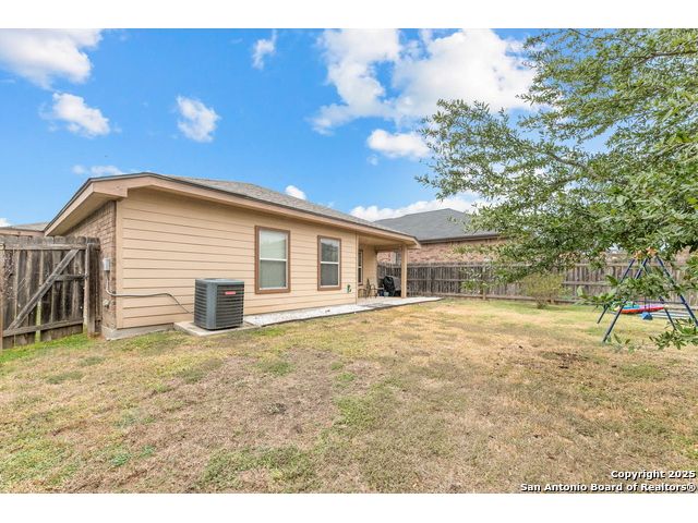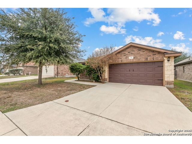 Beautiful single-story home in the desirable Key Largo community! Conveniently located near Ft. Sam Houston, Randolph Brooks AFB, I-10, and Loop 1604, this property sits in one of San Antonio's fastest-growing area's This immaculate home offers an open floor plan with tile flooring in the living area, kitchen, breakfast nook, and entry. The kitchen flows seamlessly into the family room-perfect for entertaining or relaxing. A **new roof (installed 2021)** adds lasting value and peace of mind. The brick and stone exterior enhances this home's curb appeal, while the backyard provides an ideal space for outdoor living or future extended patio additions. The property is located near parks, schools, and shopping centers with easy highway access. **Move-in ready and beautifully maintained - schedule your showing today!**