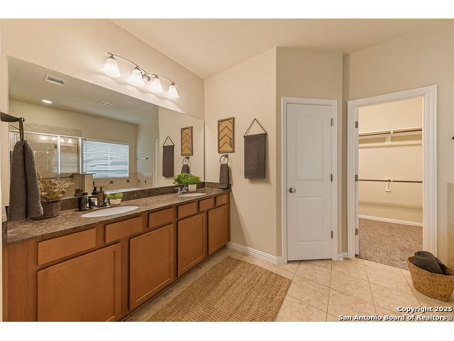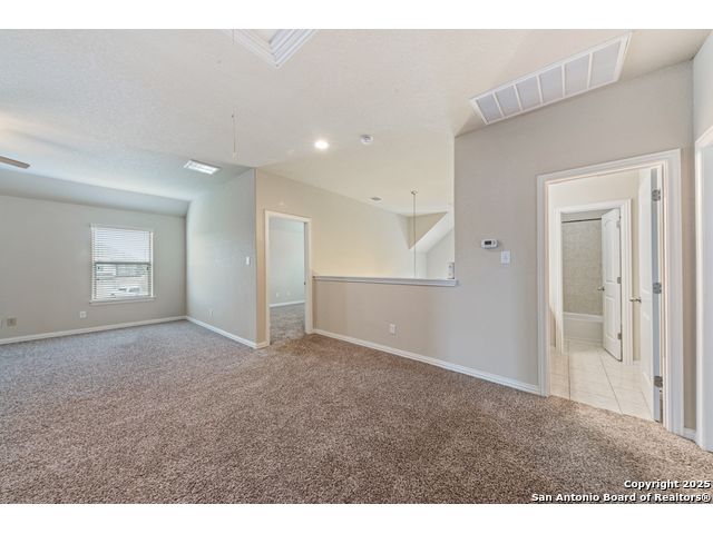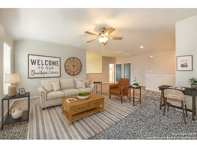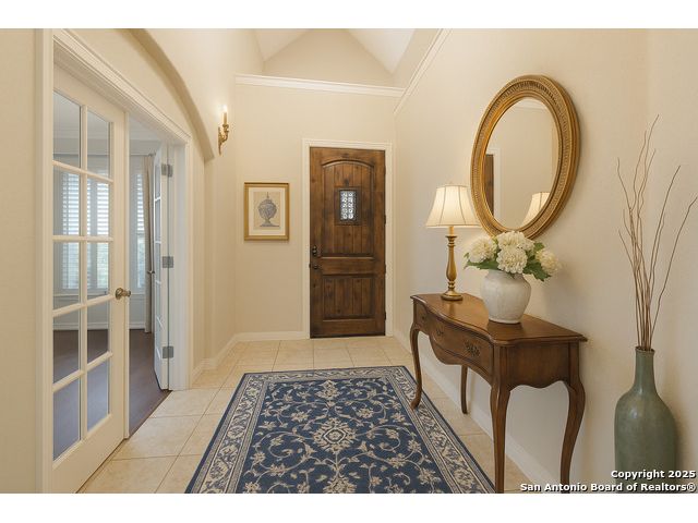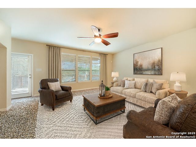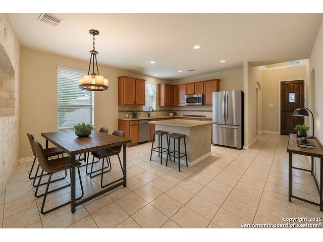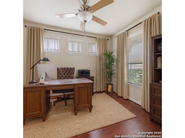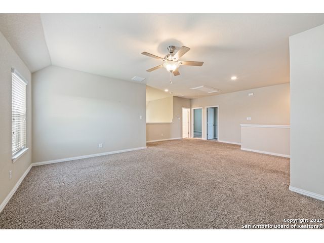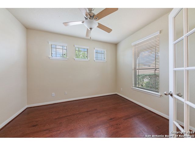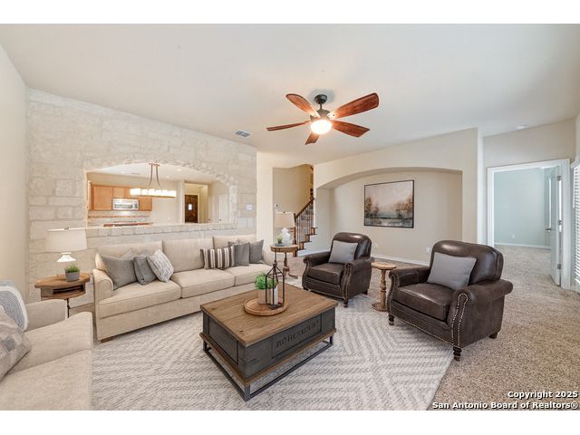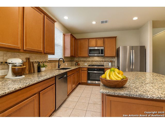 Located on an oversized 1/4-acre cul-de-sac lot, this Gehan-built home offers 4 bedrooms + game room + office-flexible and spacious with all the extras! Step onto the welcoming covered front patio and enter through a custom 8-foot door into a dramatic 2-story foyer. The dedicated office features French doors and rich hardwood floors-ideal for remote work or a quiet retreat. ~~The heart of the home is the light-filled kitchen with a massive 6x5 island offering bar seating, granite countertops, gas cooktop, and stainless steel appliances. The adjoining breakfast area fits a full-size dining table and is anchored by a modern farmhouse chandelier. A beautiful stone accent wall with an arched opening separates the dining area from the large family room, creating defined yet open spaces. ~~The downstairs primary suite boasts coffered ceilings, a bay window with backyard views, dual vanities, a soaking tub, and a tile/glass shower. ~~Upstairs, the expansive game room has space for a pool table, second living area, and homework station. Three spacious secondary bedrooms and walk-in attic access (plus pull-down stair access to a second attic) provide even more versatility. ~~A thoughtful utility room includes separate under-stair storage. The oversized 2 1/2 car garage fits 2 vehicles plus room for a workshop, golf cart, motorcycle, freezer, or extra gear. ~~Enjoy privacy and outdoor living with a covered back patio and serene wooded views-no front, back, or left-side neighbors. The massive cul-de-sac provides a safe space for outdoor play, biking, and entertaining. ~~Other features include: 4-sides brick and stone exterior ~ Full sprinkler system ~ Stone-edged landscaping beds ~ Covered front porch perfect for seasonal decor ~~Located in the desirable 78253 zip code, close to top-rated schools, parks, shopping, and dining. This rare oversized lot, flexible floor plan, and high-end finishes check all the boxes-a must-see!