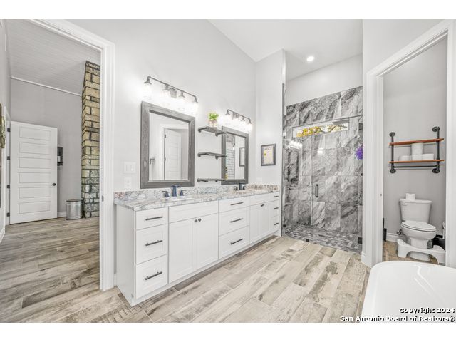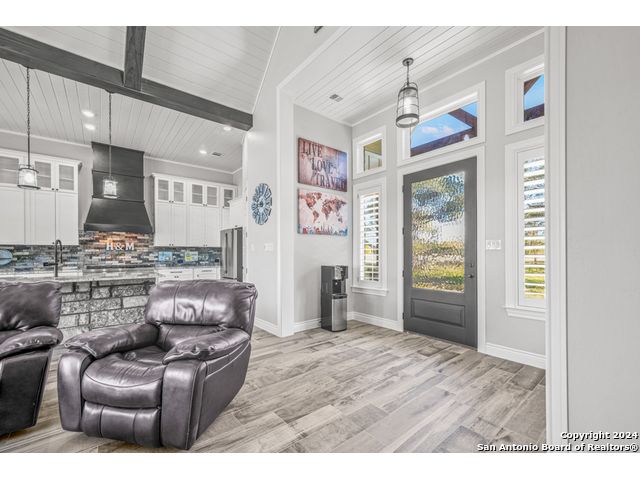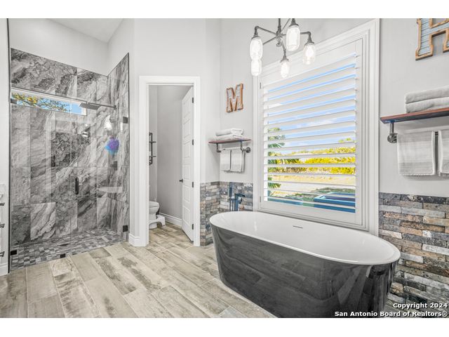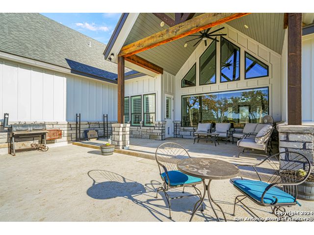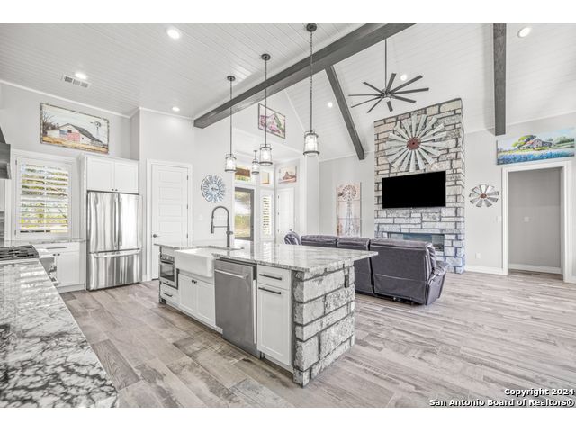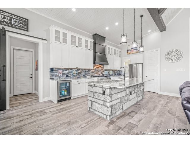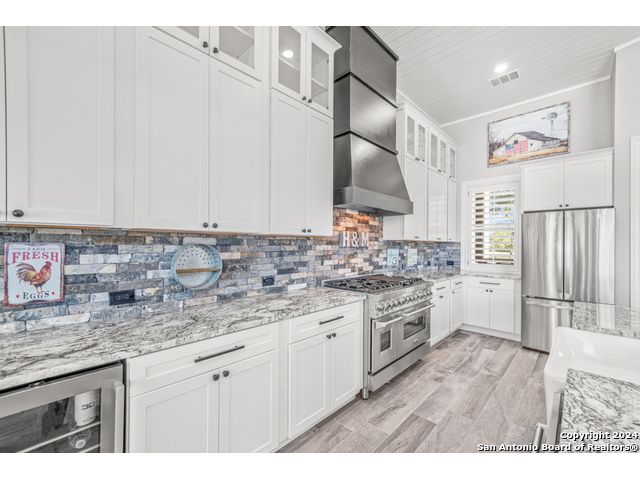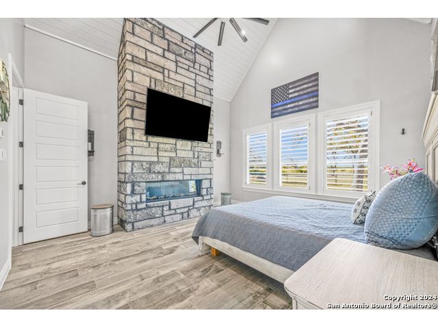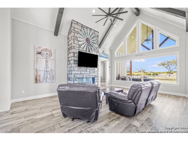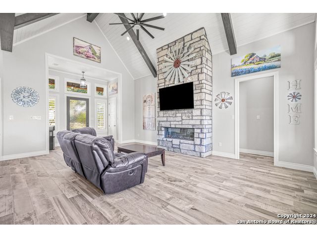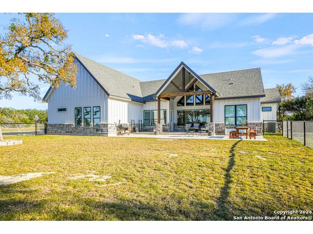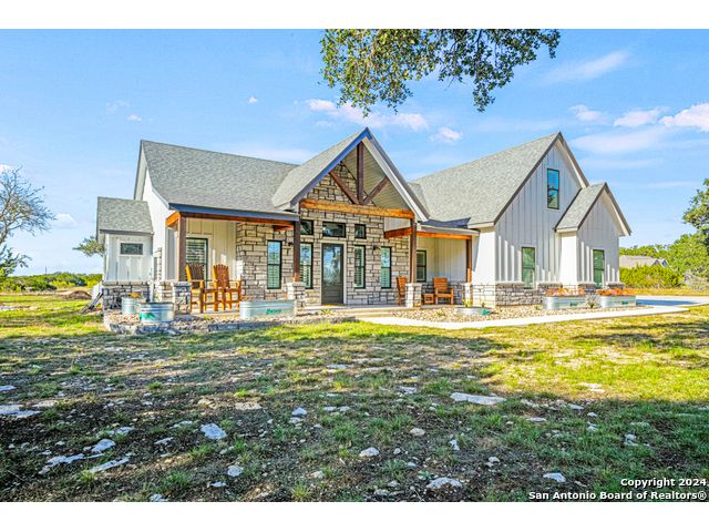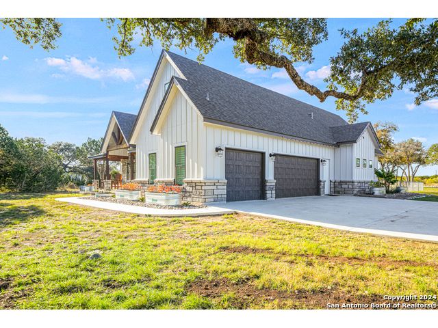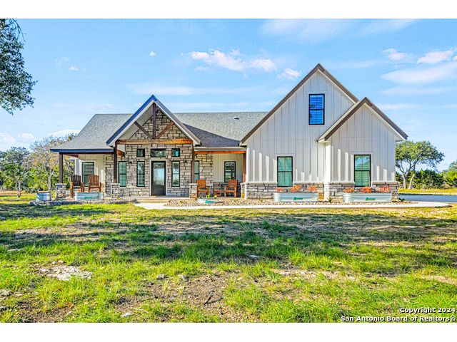 Discover your dream home in this stunning modern residence, perfectly nestled on 2.61 acres of picturesque land! With soaring ceilings ranging from 10 to 20 feet, this home boasts an expansive open floor plan that creates an inviting atmosphere for family and guests alike. The heart of the home features a large kitchen island adorned with elegant granite countertops, equipped with a top-of-the-line Z Line gas-burning stove, electric double oven, and a convenient wine fridge, all complemented by abundant cabinet space and a spacious walk-in pantry. The kitchen seamlessly flows into a cozy family room, where you can warm up beside the electric fireplace, and oversized windows flood the space with natural light while offering breathtaking views of your serene landscape. The luxurious master suite showcases its own fireplace and expansive windows, accompanied by a master bath featuring both a shower and a standalone tub. The master closet is an organizer's dream, complete with built-in dressers and plenty of storage space. Two split secondary bedrooms share a well-appointed Jack and Jill bath, while the versatile upstairs area can serve as an additional bedroom with a full bath or a flexible space for studying or gaming. A three-car garage with side entry is accessible via an extended driveway, providing ample parking for you and your guests. Enjoy outdoor living in the fenced backyard under the spacious covered patio, making this home a true sanctuary. Don't miss your chance to make this extraordinary property your own!