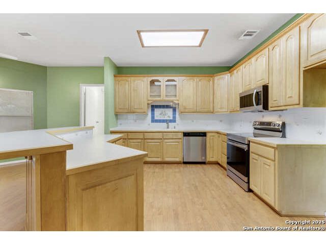 Beautifully Maintained Home in Universal City! Great family home that offers a spacious, functional floor plan with excellent storage throughout. Located in a quiet neighborhood with an elementary school inside the community, it also provides quick access to Randolph AFB, The Forum Shopping Center, and IKEA. The home features a large primary suite with a built-in office, an extra-spacious second bedroom, walk-in closets in every bedroom, an entertainment center in the living room, soft water system and a generous pantry/laundry room. Outside, you'll enjoy a nicely shaded backyard with a large deck perfect for relaxing or entertaining. Recent updates include a new inside AC unit replaced in 2025 and a roof replaced in 2016. Thoughtfully maintained and move-in ready, this home is prepared for its next chapter.