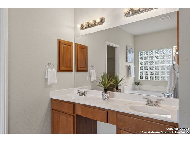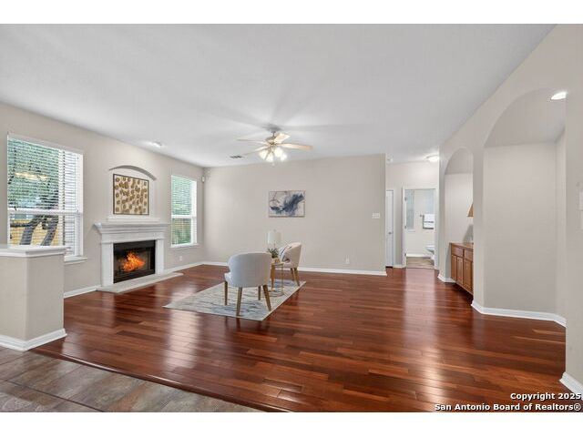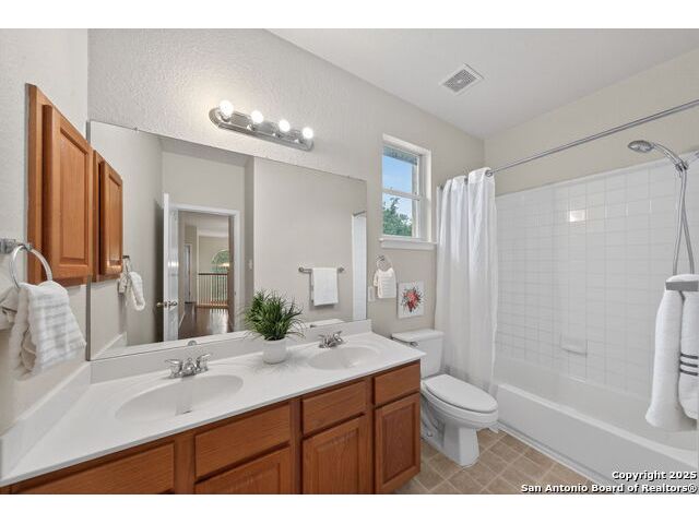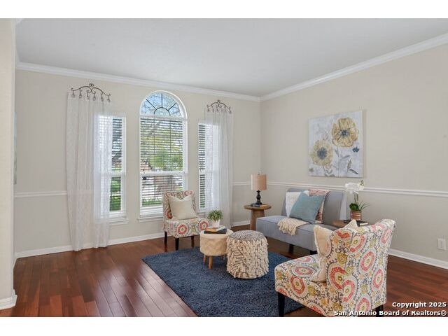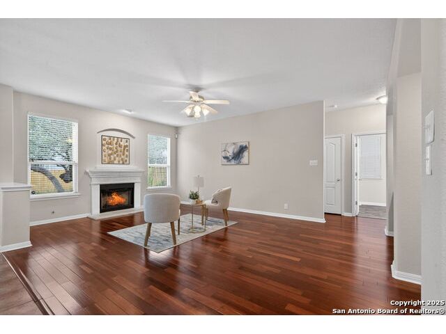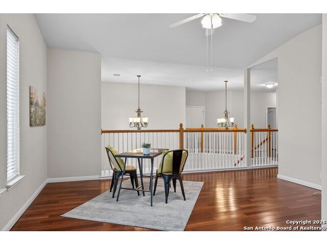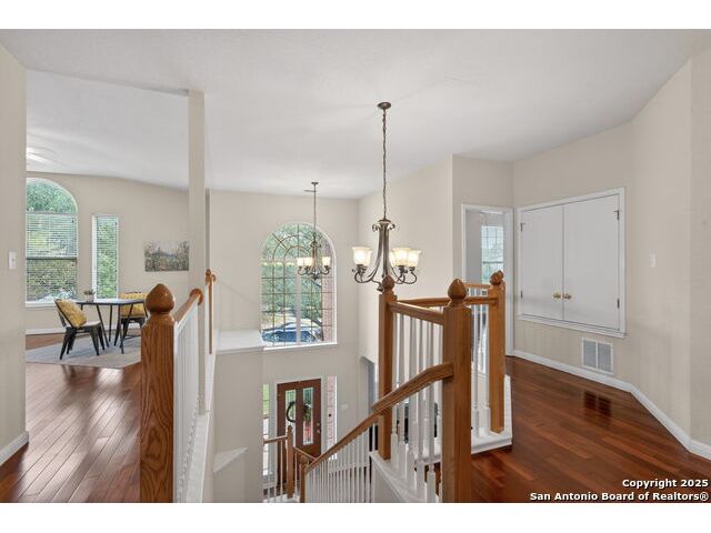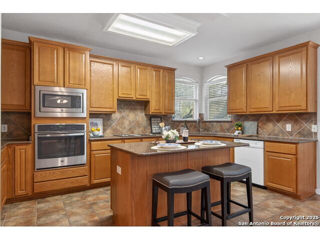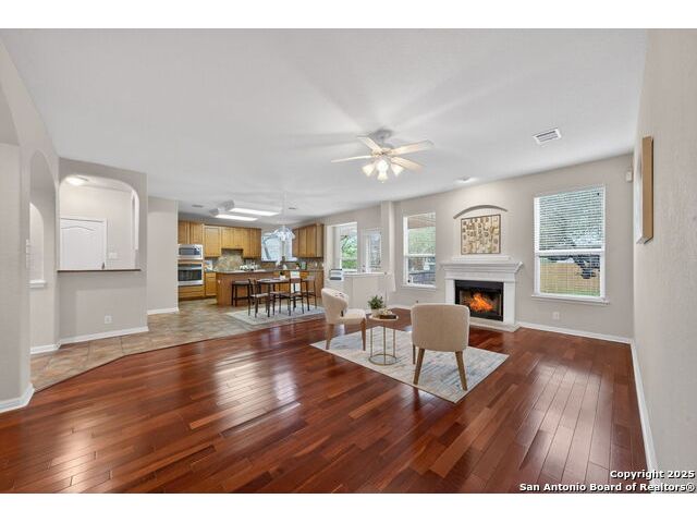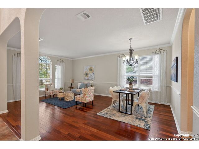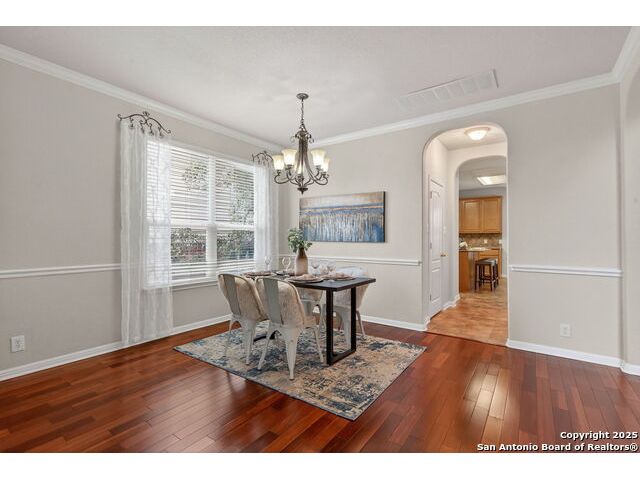 Big Home, Big Dreams. Located in Stone Oak. Welcome 2026 in a new home where new dreams begin. Step inside this home and you will discover neutral wall colors, coordinated tile, stunning wood flooring (no carpet), and high ceilings leading the eye to the second floor. Plenty of light fills the formal living room and dining room. A wet bar located next to the dining room is ideal for serving food and beverages, or the aroma from your espresso coffee bar. The kitchen features an abundance of storage with 42" cabinetry, a built-in oven/microwave, granite counters, and an oversized walk-in pantry to store food and all your gourmet or baking supplies. The kitchen island flows into a spacious family room perfect for relaxing or entertaining. Offer family or guests the convenience of a first-floor bedroom and full bath. The wood stairs lead to the second story with wood flooring, three bedrooms, a hall bathroom, and a game/media room, or space for a work-from-home office. When you are ready to rejuvenate, enter through the French doors to a generously sized primary bedroom. Create a dreamy environment with plenty of space for a sitting area to read, or refresh in your spa-like bathroom. If you desire outdoor living, enjoy your breakfast on the covered patio that opens to a large yard. Create the outdoor space as a place to relax or to entertain. Conveniently located near shopping, dining, golfing, library, and so much more. Welcome home in 2026, where your dreams are just a vision away.