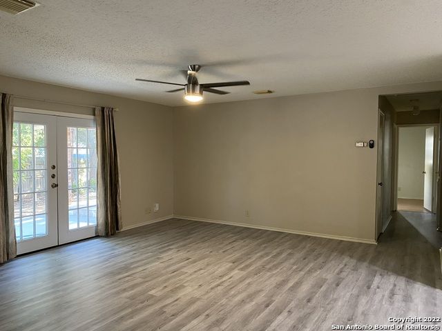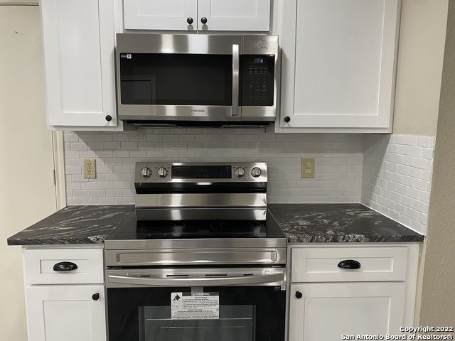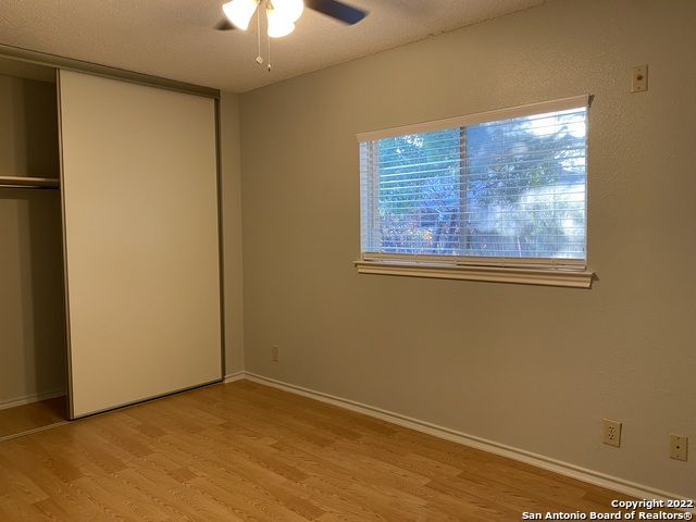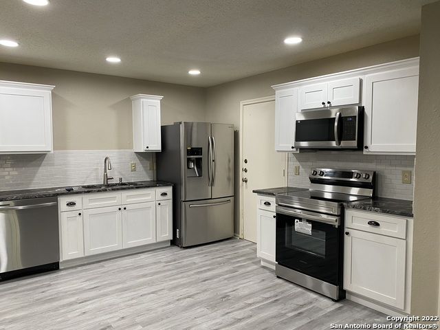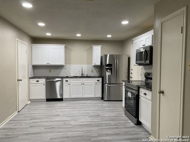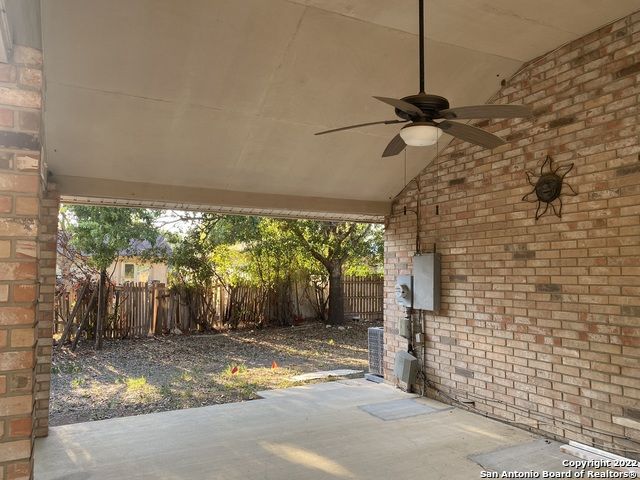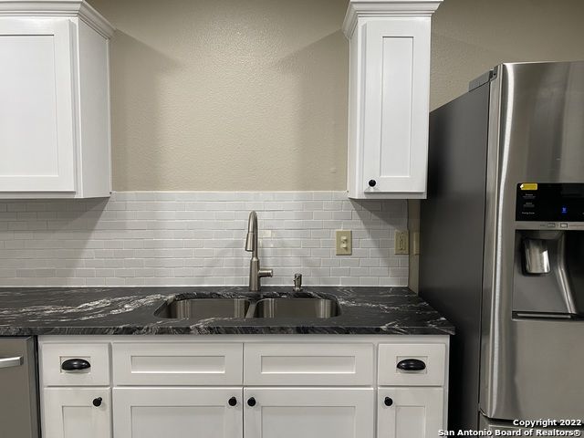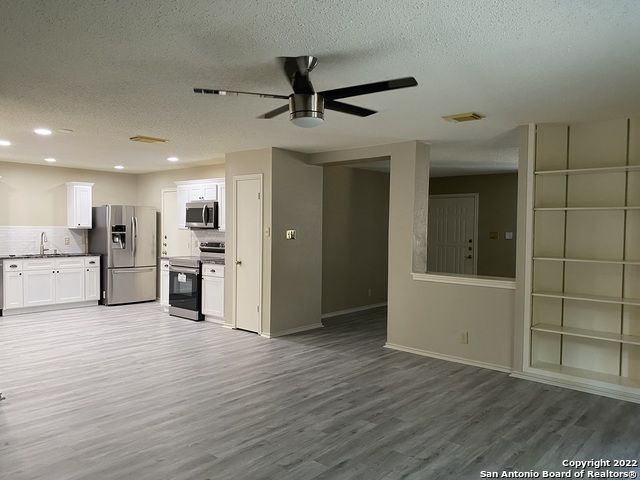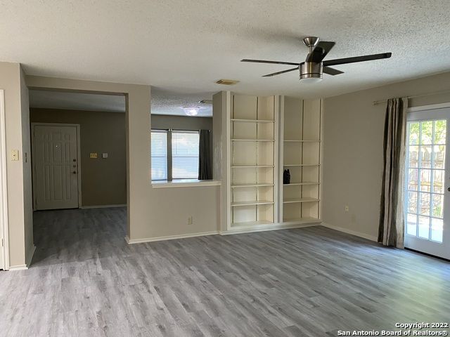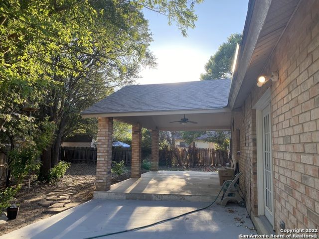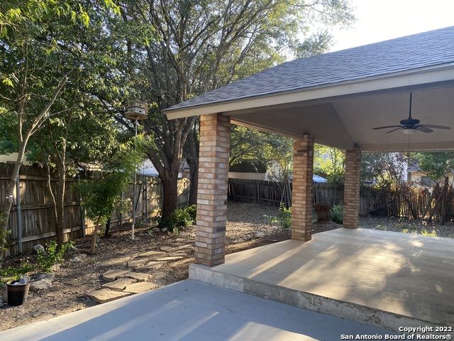 Beautiful updated one-story home in Hunters Chase. Great NISD schools, amazing location near UTSA, The Rim and La Cantera. Refrigerator, washer, and dryer included! Enjoy quiet evenings on classic covered front porch with built-in bench swing. Open-concept interior, built-in shelves, no carpets. Modern, stylish kitchen with stainless steel appliances, tile backsplash, lots of counter/cabinet space, granite countertops and new fence backyard.. Master suite features walk-in closet and attached full bathroom.