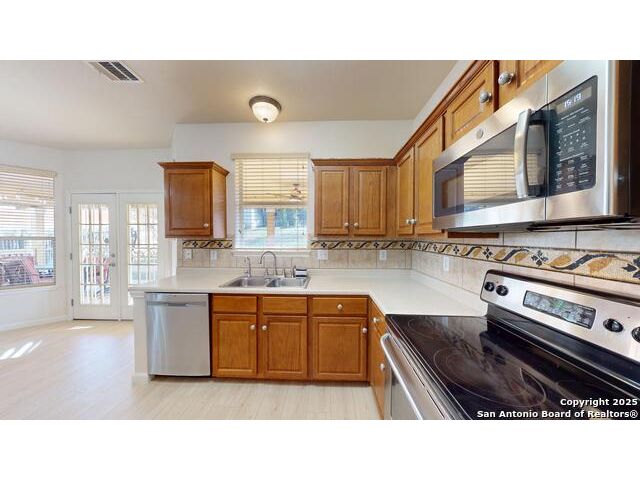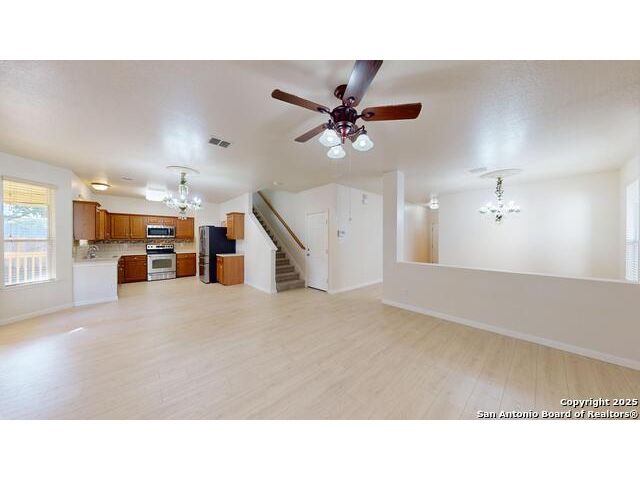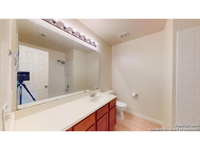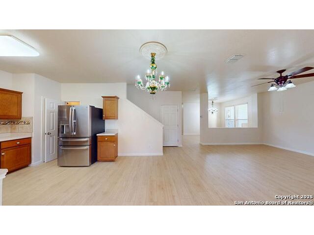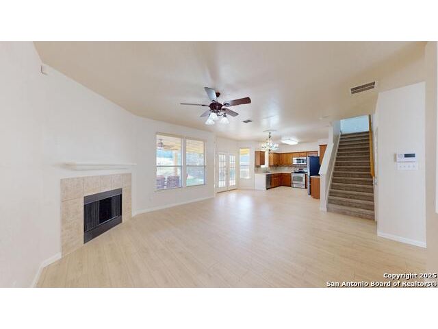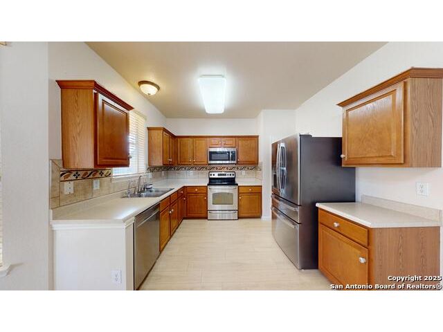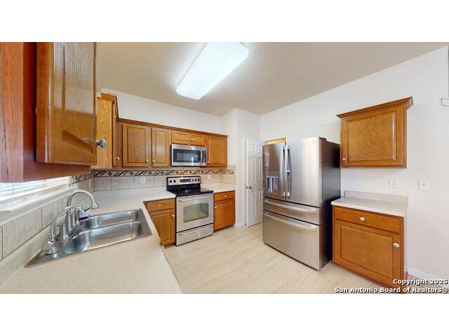 Lovely spacious 4-bedroom, 2.5-bathroom home designed for spacious living and entertainment. The main floor features a study, open floorplan with separate formal living room, family room with a cozy fireplace, large kitchen with dining area; ample cabinets in the kitchen, stainless steel appliances with refrigerator, durable laminate flooring with no carpet downstairs for easy maintenance. The large patio is the width of the home with an oversized back yard and a shed for extra outdoor storage. All bedrooms are upstairs, large game room, large Master/closet, and large secondary bedrooms with large closets. Lifetime Olshan Foundation Warranty. Brand new laminate and carpets, new paint and much more upgrades. Nearby shopping, Windcrest City Park, H-E-B, Walmart, and near military bases. This is a MUST See!!