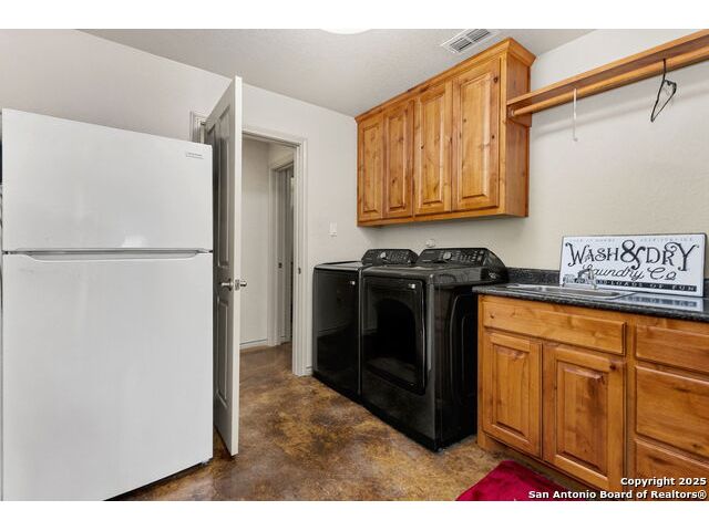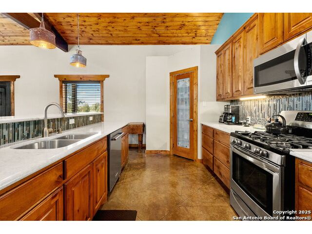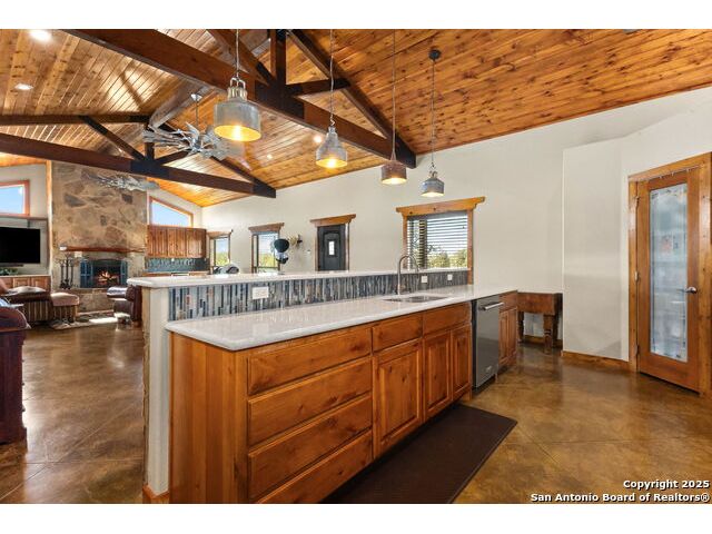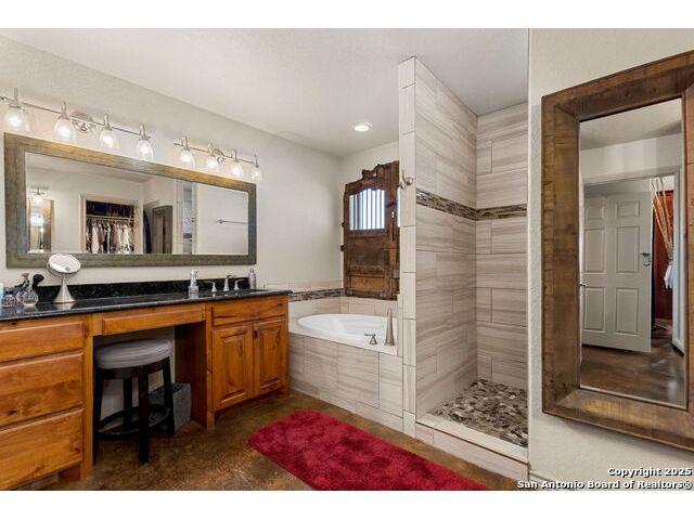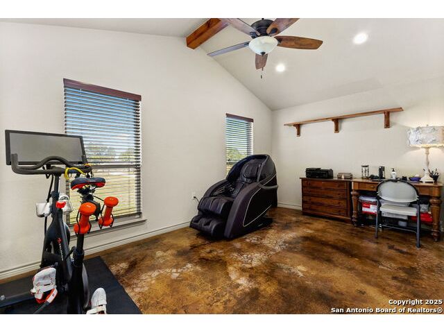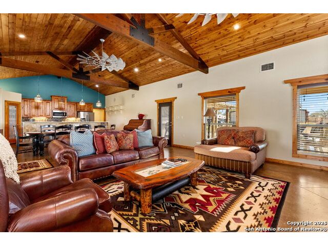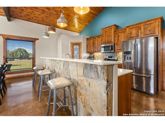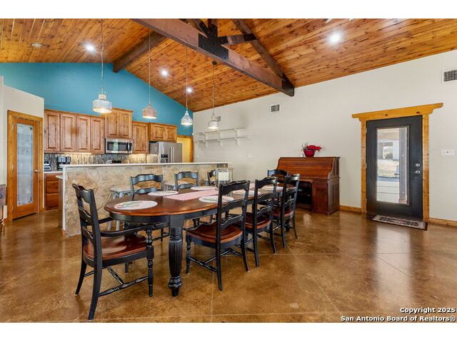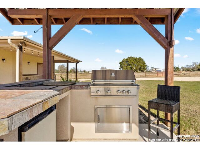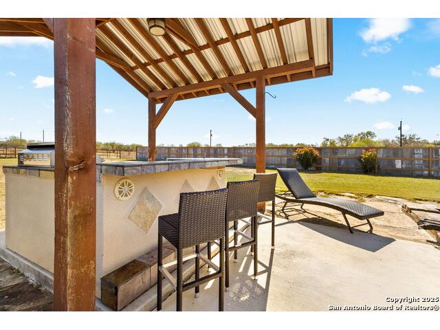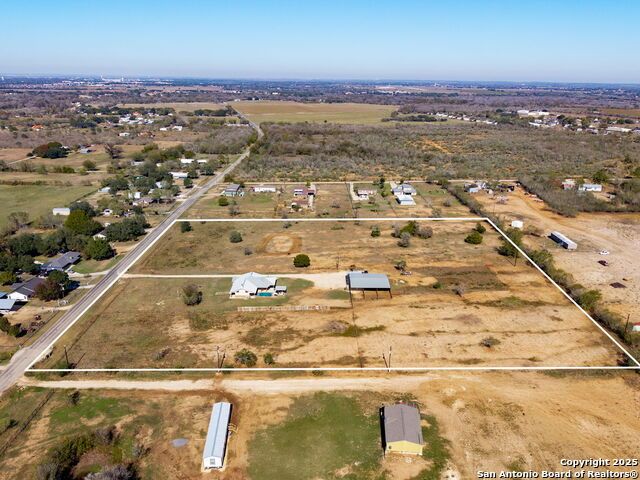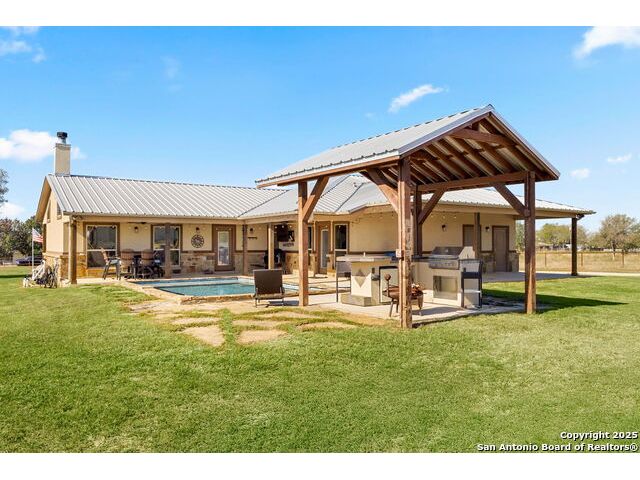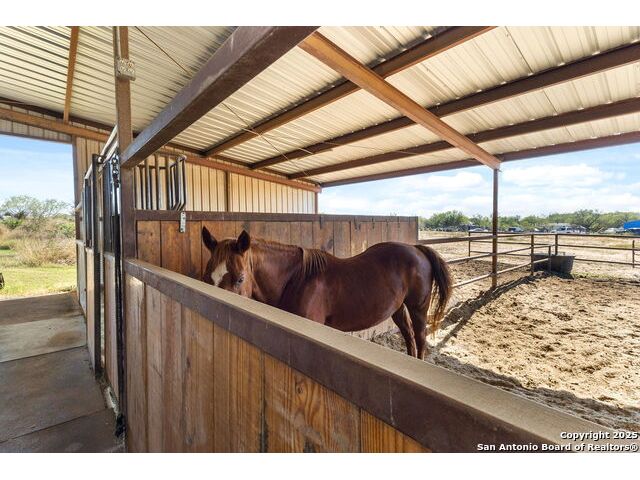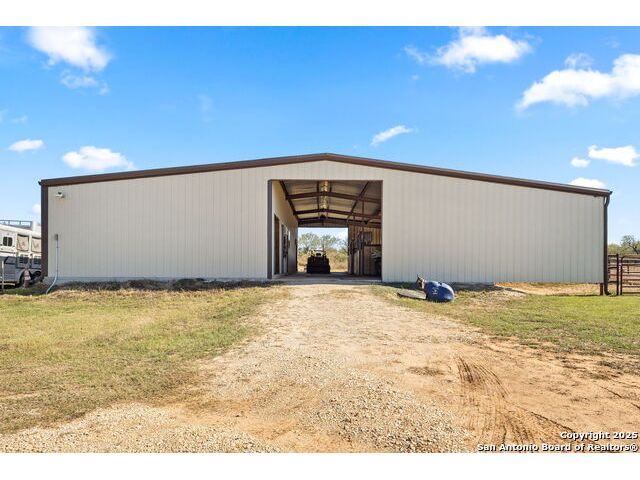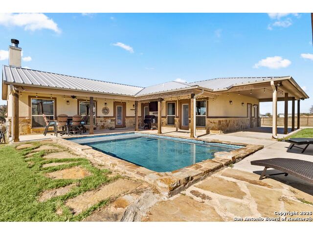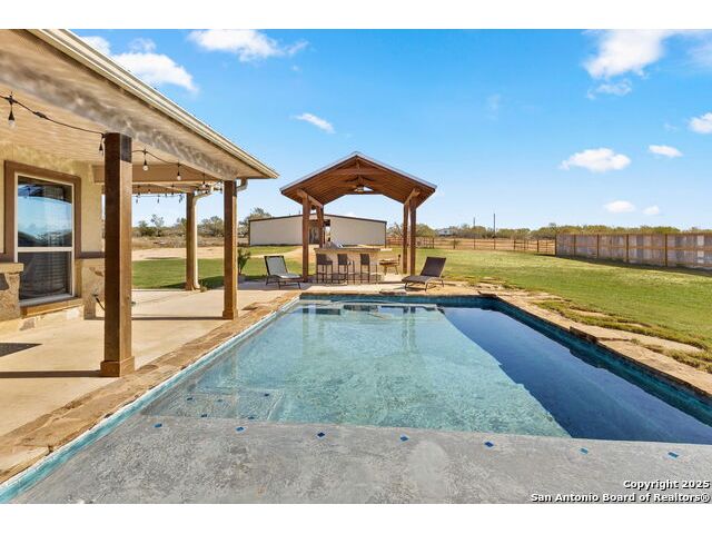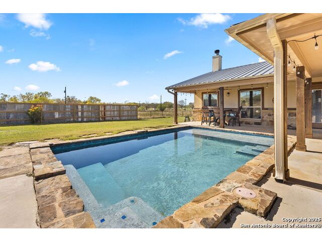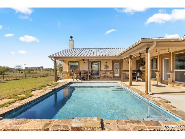 Enjoy the best of country living on ten peaceful acres just minutes from Seguin. The acreage is thoughtfully laid out with a blend of pipe fencing and high-tensile fencing, creating a secure, functional setup well-suited for horses, livestock, or those wanting a well-organized property from day one. This property brings together a quality custom home, pool, and a versatile barn/workshop-offering both comfort and purpose. The main residence features 2,250 square feet of open living space with high ceilings, stained concrete floors, and a spacious kitchen with granite counters, gas cooking, and generous cabinetry. The primary suite includes a large walk-in closet and oversized bath, and the home is equipped with a gas on-demand tankless water heater for added efficiency. Outdoor amenities include an in-ground pool, covered patio, and a fully equipped outdoor kitchen, creating a relaxing retreat ideal for quiet evenings or entertaining. A key asset to the property is the 60' x 60' combination barn and workshop, designed to support a wide range of uses. It includes a tack/feed/saddle room, climate-controlled storage, and separate guest quarters with a full bath and laundry connections-making it ideal for visitors, office space, or hobby use. With an agricultural exemption, gated entry, and a layout that balances open space with purposeful improvements, this property offers privacy, flexibility, and convenient access to town.