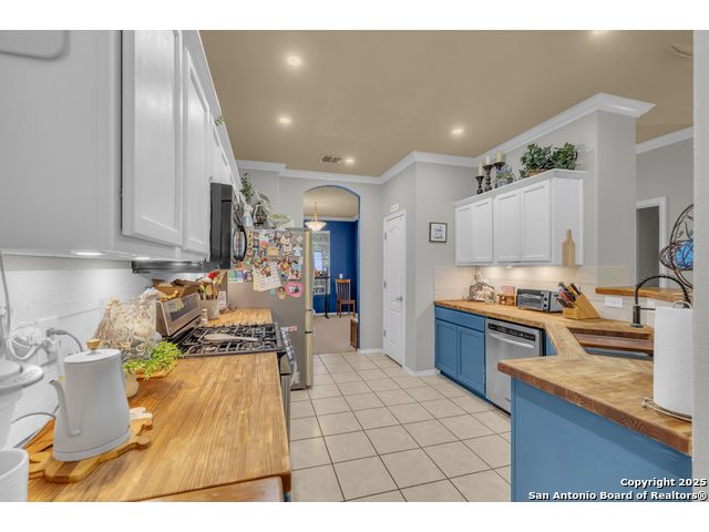 Step into this cozy two-story smart home designed for comfort, style, and convenience. Featuring beautiful butcher block countertops that add warmth and character to the kitchen, this home offers both charm and modern functionality. The oversized master suite provides a true retreat, with plenty of space to unwind. Upstairs, a spacious game room is perfect for entertaining or relaxing with family. Outside, enjoy a serene backyard deck ideal for morning coffee or evening gatherings, and a built-in dog kennel in the home for your four-legged friends. With its thoughtful details and smart home technology, this property blends contemporary living with everyday comfort