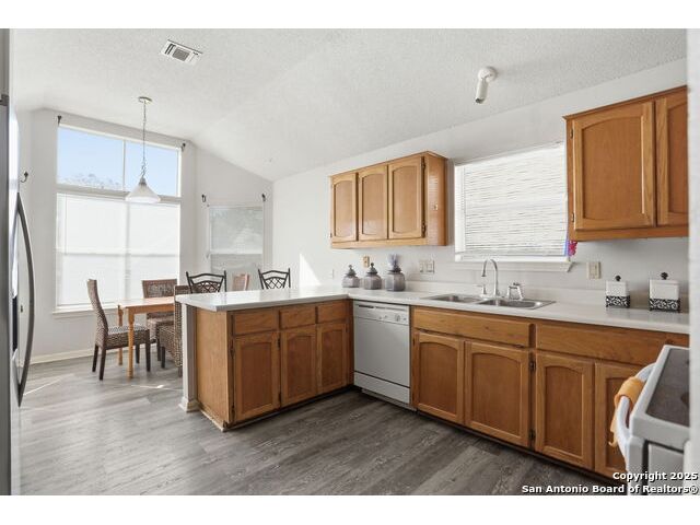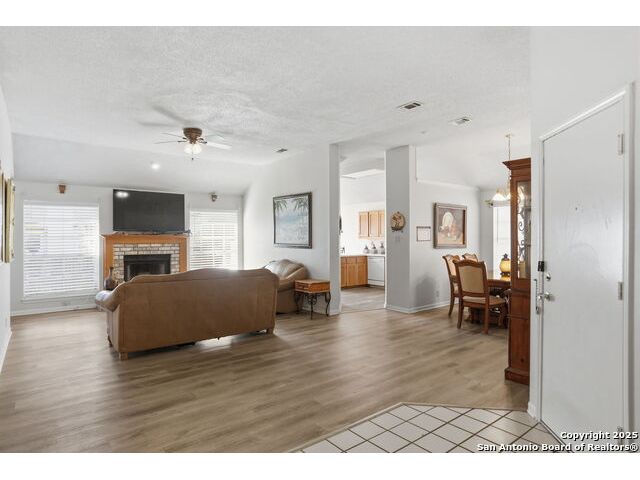 Welcome to this charming and well-maintained 3-bedroom, 2-bath home located in the established Woodlake subdivision. Featuring an open floor plan, this home offers a spacious living area with a cozy fireplace, perfect for gatherings and relaxation. The large kitchen includes an eat-in dining area, providing plenty of room for meal prep and entertaining. A versatile formal dining room can easily serve as a dedicated home office or flex space to fit your lifestyle. The split primary bedroom offers added privacy and includes an extra-large ensuite bathroom with a soaking tub, separate shower, walk-in closet, and additional linen closet. Secondary bedrooms each include generous walk-in closets and share a well-sized bathroom. New roof in 2022 and foundation repair completed in April 2024. The home features three-side brick, a two-car garage, and a spacious backyard ideal for outdoor entertainment.