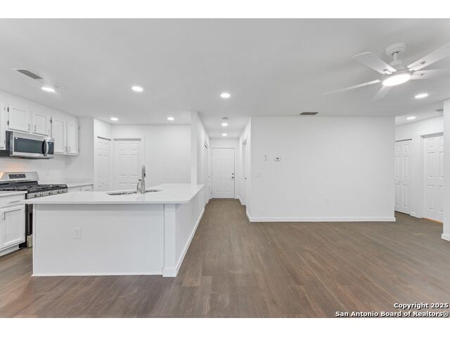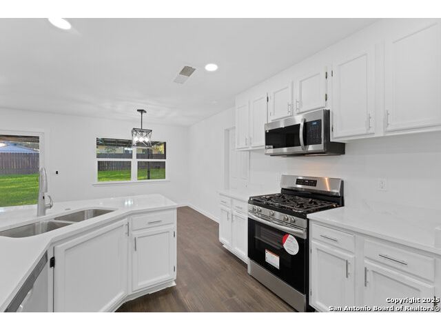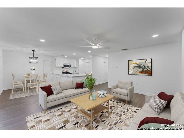Freshly remodeled with clean modern finishes, this 4-bedroom, 2-bath home offers the perfect blend of style and comfort. The heart of the home is the beautifully updated kitchen featuring white cabinetry, quartz countertops, a spacious island with effortless flow, and a gas stove-ideal for cooking, gathering, and entertaining. The primary bedroom is thoughtfully set apart from the others, giving you a sense of privacy without feeling disconnected. Its updated bathroom includes a sleek stand-up shower and refreshed finishes that complement the home's modern feel. Step outside to a covered patio overlooking a generous backyard-your ready-made space for hosting friends, weekend BBQs, or enjoying quiet evenings at home. All of this in a prime location just minutes from major shopping, dining, grocery stores, gyms, and easy access to Loop 1604 & I-35. Your next chapter starts here!
