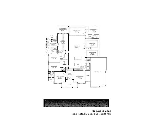 Double front doors open into the entryway. Hardwood floors throughout living areas. The home office features French doors for added privacy. The dining room is adjacent to the office and has a direct connection into the kitchen. As you enter the heart of the home you are welcomed by the open kitchen which features a prep island, an island with built-in seating, 6-burner gas range top and a large walk-in pantry. The expansive family room boasts a sliding glass door, a warming wood mantel fireplace, and access to the extended covered backyard patio. The morning area is connected to the game room by a set of French doors. The primary bedroom boasts three large windows and an extended ceiling. Double doors lead into the primary bathroom which includes dual vanities, a freestanding tub, glass enclosed shower, and two walk-in closets. The three secondary bedrooms each feature their own bathroom, linen closet, and walk-in closet. The mud room is located off the four-car garage that has additional storage space.