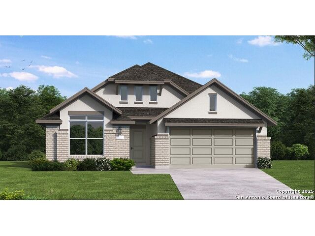 Welcome to 201 Desert Bloom - the highly sought-after Kennedale floorplan with 2,460 sq. ft., soaring 12' ceilings, and a MASSIVE, one-of-a-kind wraparound island that steals the show. This 1-story home backs to a private greenbelt and features 4 bedrooms, 3 baths, and a dedicated study. The open-concept kitchen and family room are flooded with natural light, anchored by the signature wraparound island-perfect for entertaining, hosting, and everyday living. The primary suite offers a spa-style bath with dual vanities, soaking tub, separate shower, and a large walk-in closet. Additional features include: 4-side brick, gas community, gas stub-out on the patio, mudroom entry, and an ideal guest suite up front. A premium greenbelt lot, iconic wraparound island, and 12' ceilings make this Kennedale a rare find.