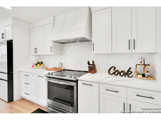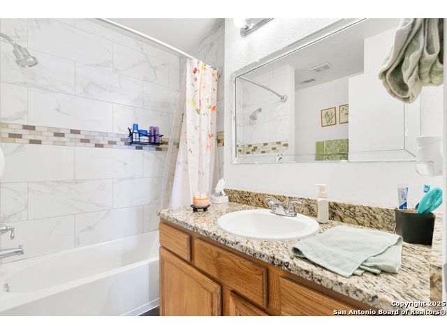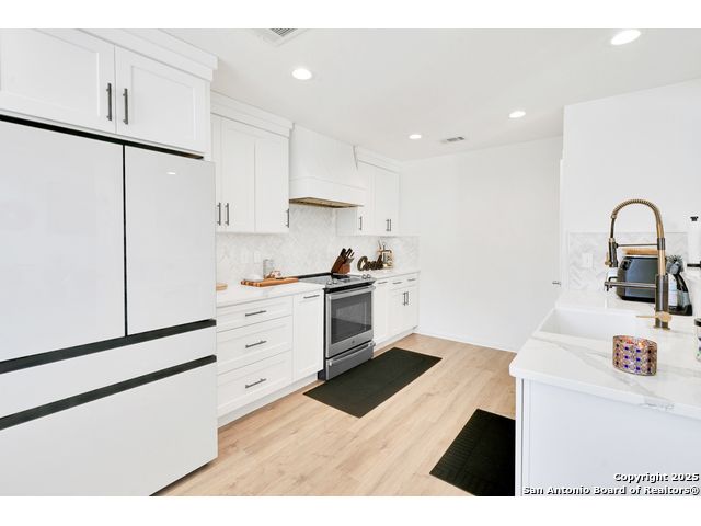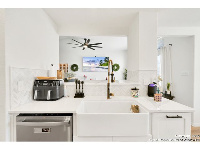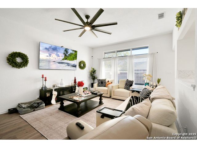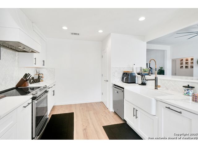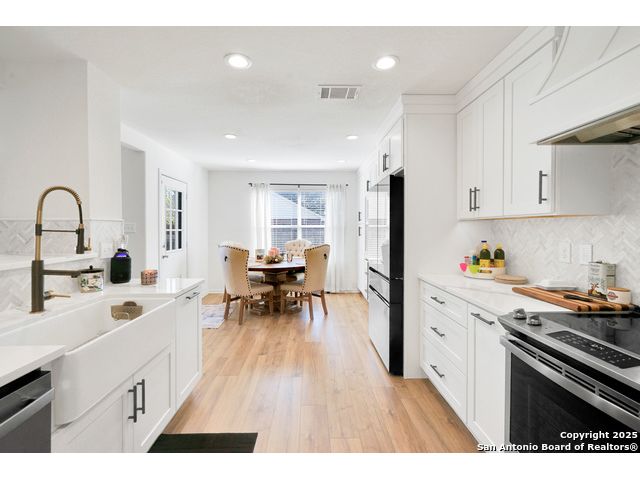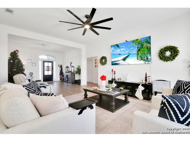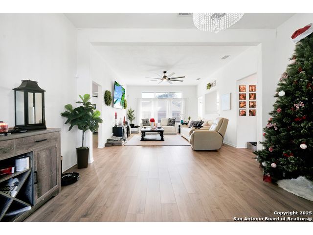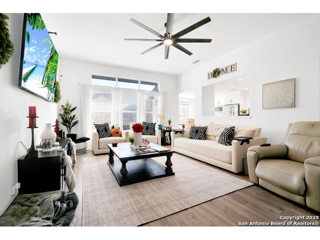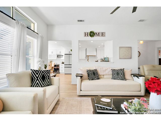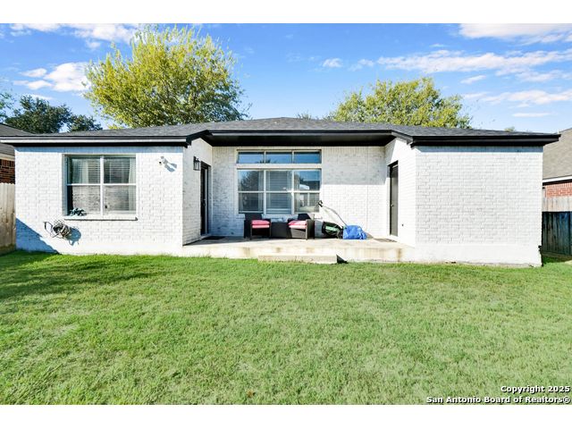 Current interest rate may be assumable. Situated in the sought-after Highland Farms subdivision, this beautifully maintained and updated single-story, all-brick home offers 3 bedrooms, and 2 baths; combining style, functionality, and comfort. The home's open floor plan creates a seamless flow between the living and dining areas, providing bright, inviting spaces perfect for everyday living and entertaining. The split bedroom layout places the primary suite apart from the secondary bedrooms, offering privacy and a tranquil retreat. Bedrooms are carpeted for comfort, while the bathrooms and laundry room feature ceramic tile, and the remainder of the home, including the living room and kitchen, boasts upgraded laminate flooring. Recent updates are extensive and impressive, including a brand-new custom kitchen, a new roof, water heater, AC unit, laminate flooring, and exterior lime wash paint. Step outside to a generously sized, grassed backyard with a charming covered patio area, ideal for relaxing or hosting gatherings. Although the curtain rods, curtains and refrigerator are not included the Washer and Dryer may convey with the home purchase! This home's prime location ensures easy access to Ft. Sam, Randolph AFB, local schools, and shopping, making it a perfect blend of convenience, modern updates, and timeless appeal.