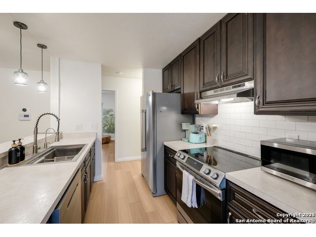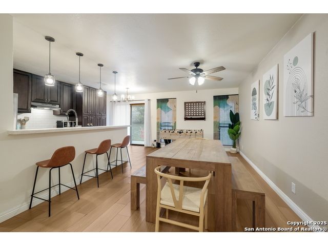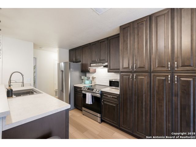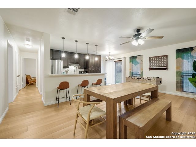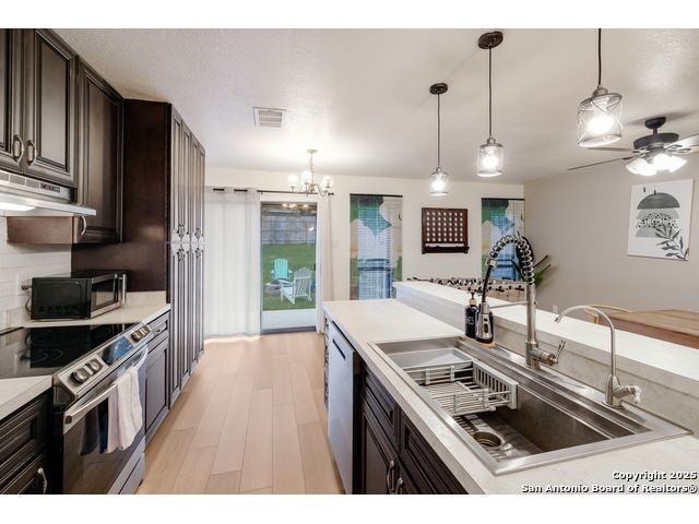 Beautifully maintained 3-bedroom, 2-bath home featuring an open-concept layout with a spacious kitchen, rich cabinetry, stainless steel appliances, and a large breakfast bar. Bright dining area overlooks the backyard, perfect for gatherings or entertaining. Solar panels offer energy efficiency and lower utility costs. Conveniently located near Potranco Road and Hwy 151 with quick access to shopping, dining, and major employers. Move-in ready and perfectly situated for comfort and convenience!