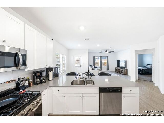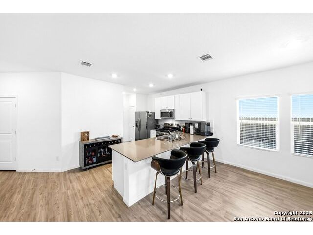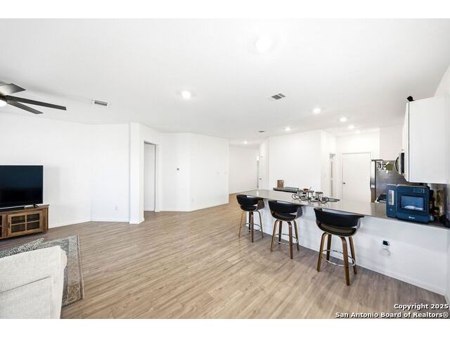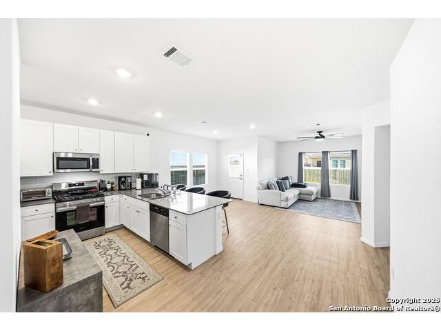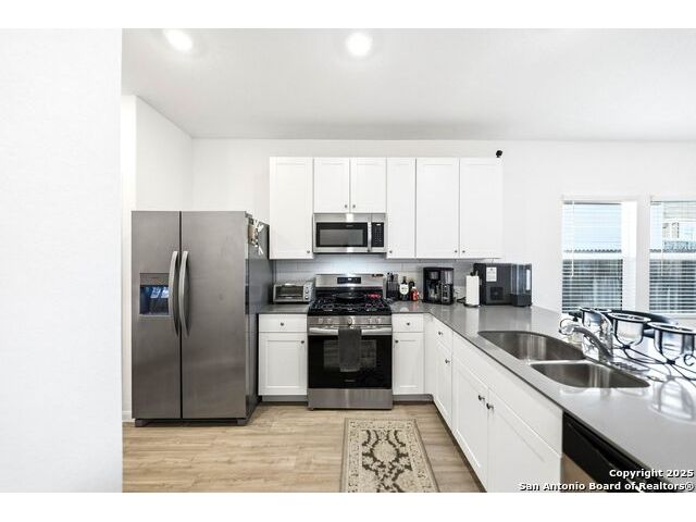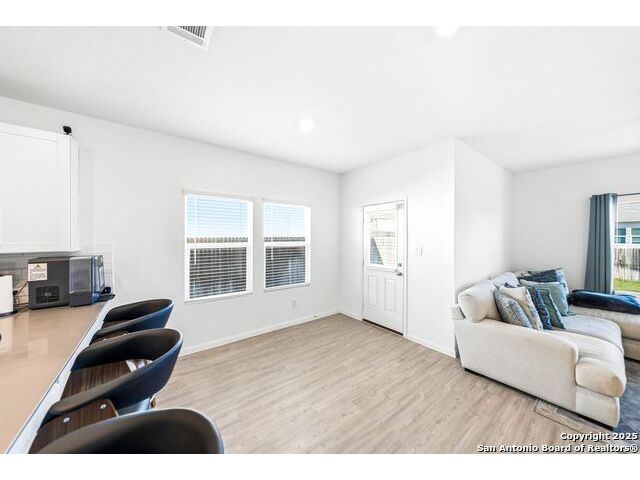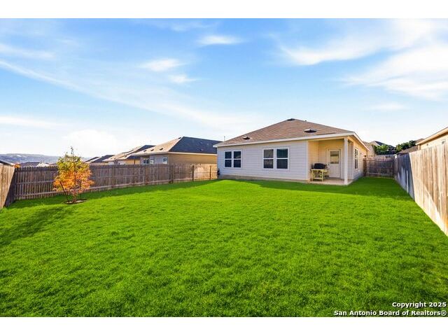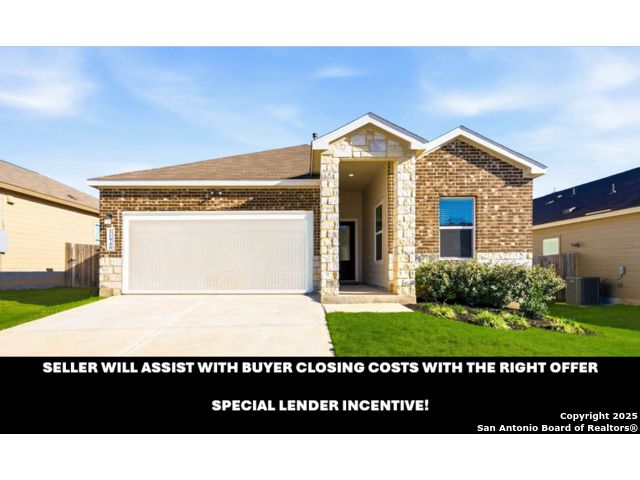 The seller will assist with buyer's closing costs with the right offer! Plus lender incentives towards buyer's closing costs! BIG SAVINGS ON MONTHLY MORTGAGE PAYMENTS! Welcome to 31940 Native Sun Rd, Bulverde, Texas - a beautifully maintained 3-bedroom, 2-bath brick home offering 1,608 sq ft of smart, stylish living space that blends comfort, function, and elegance. This home features a bright open-concept floorplan with a seamless kitchen and living room combo, perfect for entertaining, relaxing, and everyday living. The kitchen opens directly to the living area, making the space feel wide, airy, and welcoming. The primary bedroom is privately located in the back of the home and includes a gorgeous en-suite bathroom with double vanity sinks, tile finishes, and a spacious walk-in closet for convenience and comfort. Two additional bedrooms offer flexibility and functionality, with one bedroom perfectly suited as a home office, guest room, or creative space. The kitchen features beautiful cabinets, quartz countertops, energy-efficient appliances, including a dishwasher, microwave, and stove, plus a spacious pantry for extra storage. Outside, enjoy a flat, private backyard ideal for gatherings, pets, relaxation, or gardening, enhanced by a full sprinkler system. This home is truly move-in ready and has been very well maintained. Additional highlights include fiber-optic high-speed internet, a garage door opener, and a strong brick exterior for timeless appeal and durability. Washer, dryer are negotiable with the sale. COMMUNITY: Imagine living in a RESORT STYLE COMMUNITY where every day feels like a vacation! Experience modern living with amenities like a stunning infinity pool, a brand-new Junior Olympic-sized lap pool, and a splash pad for kids. Access a contemporary clubhouse, a well-equipped 24/7 gym, a fitness center, and enjoy yoga classes. Discover miles of scenic walking and biking trails and access to the dog-friendly Kleck Park. Challenge friends to basketball, host BBQs, or spend quality time with your children on multiple playgrounds, where one features an exhilarating zip line, while the other offers diverse play options! Join an engaging community center hosting live music, events, and food trucks. Relax by the catch-and-release fishing pond. Hidden Trails offers a vibrant lifestyle with endless possibilities! LOCATION: Hidden Trails subdivision provides convenience, located just off Highway 281, with a few minutes drive to nearby shopping at HEB and Walmart, as well as Starbucks, restaurants, and medical facilities. All your daily needs are within easy reach. The San Antonio Airport is a mere 30 minutes away. Additionally, the stunning Canyon Lake is just a short 20-minute drive.