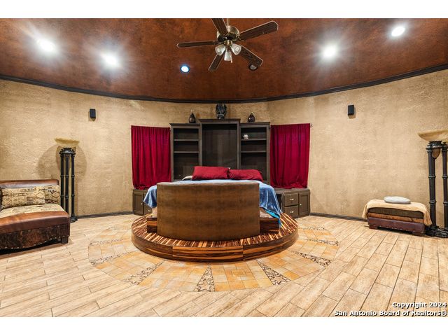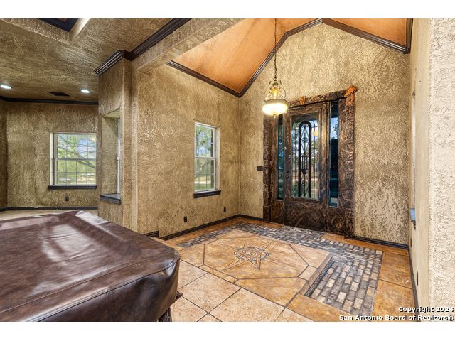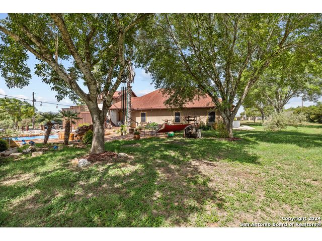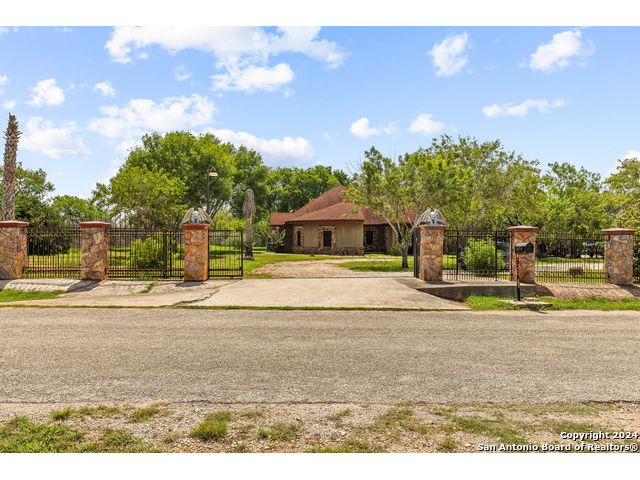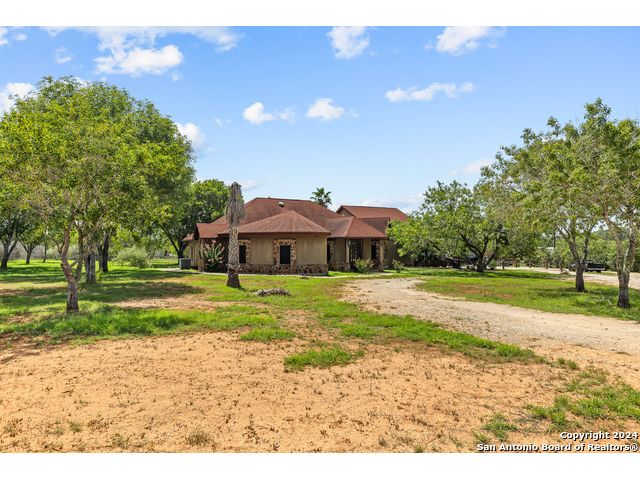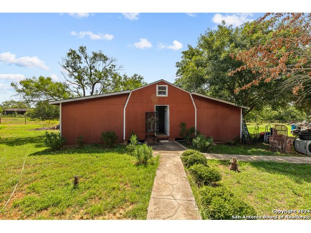 NO HOA! CUSTOM BUILT, SPANISH/MEDITERRANEAN STYLE ESTATE! 2.189 Acres, Electric remote Gate, Large 3 Bedroom 2 1/2 Bath Home, Plus Mother-N-Law Suite upstairs (semi-separate), 1 Bedroom, 1 Bath, Kitchen, Living room open to large 2nd floor deck, separate a/c system. Plus, Red Barn 1 Bedroom Loft Studio Apartment with kitchenette has its own A/C/water/bath. Plus Large 2-level Metal Workshop equipped with 102v/240v, A/C Central air/heat, car lift, pneumatic air system for tools, and two large metal garage doors on a cement slab. Seller currently restores cars and builds custom motorcycles! Custom-designed pool and jacuzzi pool look like an oasis! Plus a large covered stone-built Cabana/Gazebo with wraparound deck for entertaining! Property is mostly cleared, bring your farm animals, vehicles, trucks, RV, Boat, etc. Home is amazing! Ultra-high-accented ceilings, the master is breathtaking with ultra-high ceilings and a huge custom walk-in closet, custom cabinets, tables, and more! Separate large tub, shower, dual vanities, home has a built-in wet bar with refrigerator, sink, and more for entertaining inside, and multiple living areas. A large kitchen with an eat-in bar, appliances, and accents within! 2-car attached garage, 2-car carport attached, and so much more! A Real MUST SEE! 16-foot ceilings in the master fit for a KING! The Kings' Estate is uniquely and unmistakably delineated as you approach the entrance with a custom stone and iron fence sporting accents and an electric /remote gate. In LaVernia, just minutes to San Antonio, just outside 1604. Shopping, entertaining, golf, Lake Calaveras is also minutes away, and more! YOU HAVE TO WALK THE KING'S ESTATE TO FEEL AND SEE THE MAJESTY OF THIS GRAND OASIS! ARE YOU THAT KING THIS LAND SEEKS??? HURRY! Priced to Sell!
