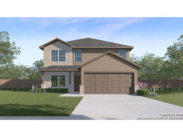 Step into The Callum, a two-story home featured in our Avenida community in Converse, TX. This floor plan is one of our larger floor plans. This layout features 5 bedrooms, 3.5 bathrooms and a 2-car garage. The Callum also offers 3 classic front exteriors and 2,660 square feet of comfortable living. The Callum features classic designs and modern features that blend seamlessly to create the perfect space for you and your loved ones. The covered front patio (per plan) opens into a beautiful foyer and formal dining room with abundant natural light from multiple windows. The foyer leads into an open-concept kitchen with stainless steel appliances, quartz countertops, white subway tile backsplash, and a kitchen island that faces the spacious living room, perfect for entertaining! The private main bedroom suite is also located off the living room. Your bedroom area is spacious and you'll relax in style with large windows and quality carpet flooring. The ensuite bathroom features ceramic tile flooring, desirable double vanity sinks, separate garden tub and walk-in shower, a private water closet, and large walk-in closet with plenty of shelving. The second story of The Callum has so much to offer! A large loft area is waiting for you at the top of the stairs. Whether you use this space as a game room, office, or a media room, there is sure to be comfort. Your remaining 4 bedrooms are all located off the loft and include large windows, quality carpet flooring and spacious closets. You will also find 2 full bathrooms upstairs, complete with bath tub and shower combos and single vanity sinks. This floor plan even has a linen closet! Additional features include luxury vinyl plank flooring in the entry, family room, kitchen, and dining area, ceramic tile in the bathrooms and utility room, and pre-plumb for water softener loop. You'll enjoy added security in your new home with our Home is Connected features. Using one central hub that talks to all the devices in your home, you can control the lights, thermostat and locks, all from your cellular device.