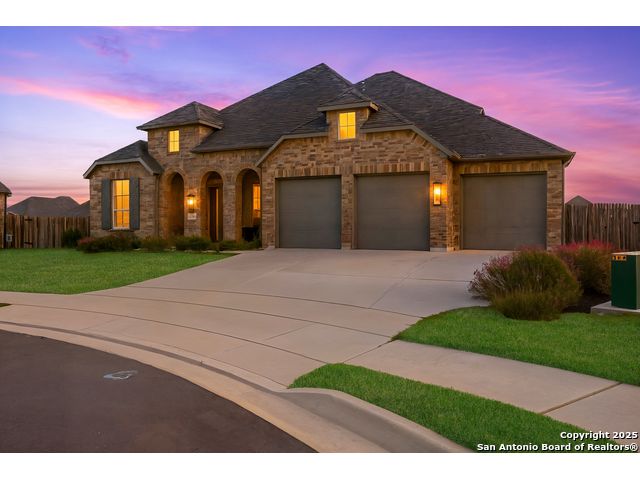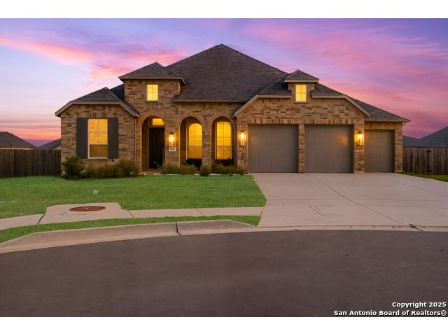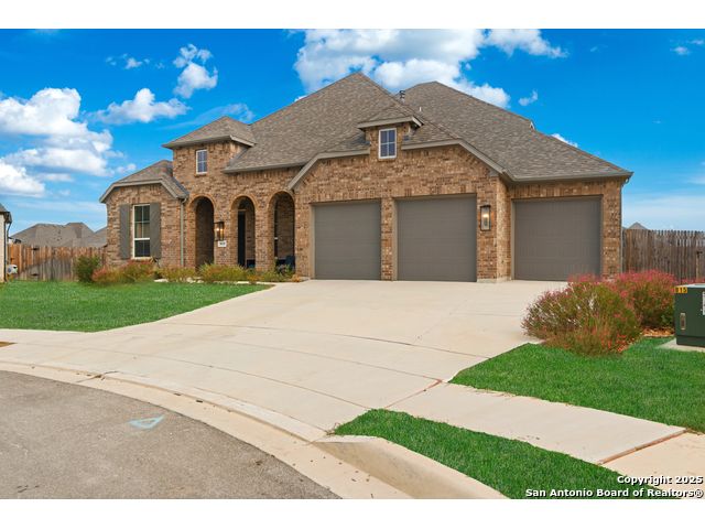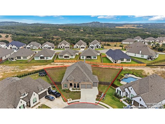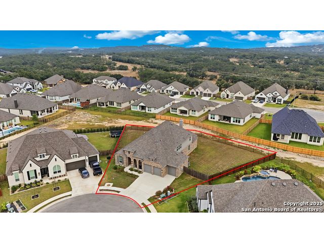 Missed your chance to own a Highland Home in Ventana? This is your second chance - and it's even better. Welcome to this stunning 5-bedroom, 4.5-bath home perfectly positioned on an oversized cul-de-sac lot with Hill Country views from the front porch. Designed for both everyday comfort and unforgettable entertaining, this home checks every box. Inside, you'll find a private office, home gym, spacious game room, and a dedicated media room - making it ideal for work, play, and relaxation all under one roof. The open-concept floor plan flows effortlessly into the luxury kitchen, offering the perfect backdrop for hosting family and friends. Step outside to the extended covered patio, where indoor-outdoor living truly shines - an entertainer's dream! Add in the 3-car garage, generous lot size, and thoughtful layout, and you have a home that delivers space, style, and functionality. Located in sought-after Ventana and zoned to top-rated schools, this home offers the rare combination of luxury living, prime placement, and community charm. Opportunities like this don't come around often - schedule your private showing today and make this Hill Country beauty yours.