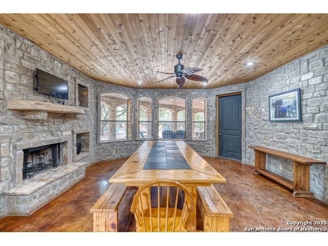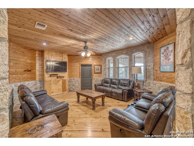 Beautiful rock 6-bedroom, 4.5 bath getaway in Concan nestled in the Texas Hill Country minutes from the sparkling Frio River. This two-story retreat features spacious indoor and outdoor living, a fireplace, a private pool, and an outdoor patio bar. Enjoy the Frio Valley golf course out your back door and take in clear Hill Country views in every direction. Access to Garner State Park, entertainment, and all Frio River attractions is just minutes away. Professionally managed by Frio Premier rental homes. Home conveys fully furnished.